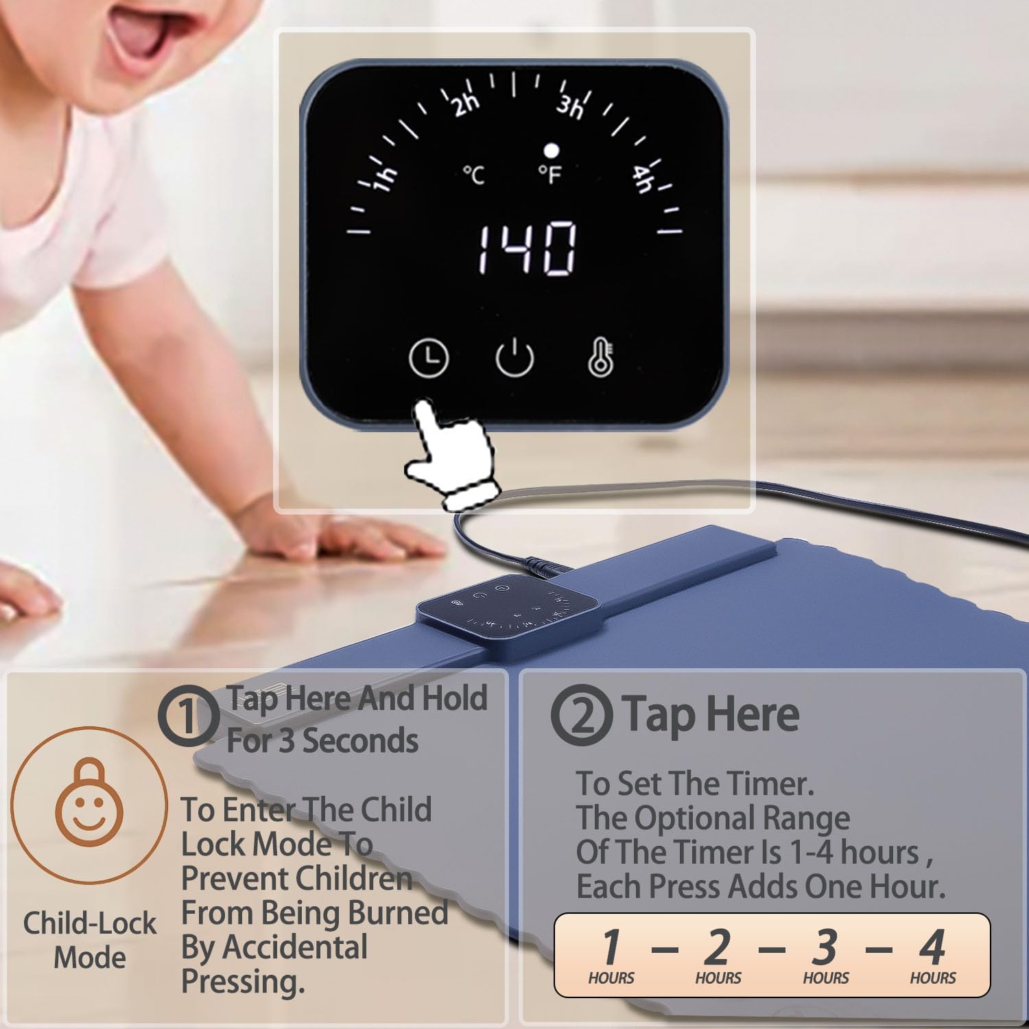 - 💗4-Timer Settings: 1h-2h-3h-4h. In Addition Child Lock To Prevent Children From Accidentally Touching and Ensures That The Unit Operates Safely Around Children