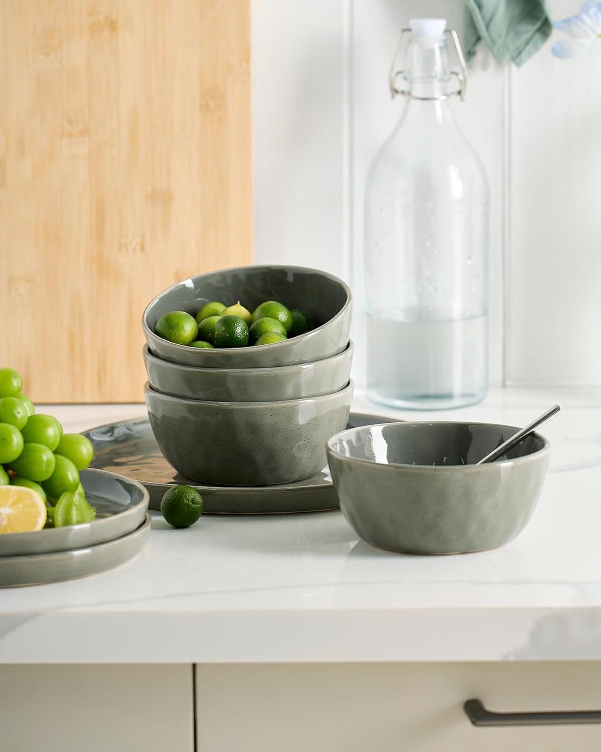 Famiware Mars Plates and Bowls Set, 12 Pieces Dinnerware Sets, Dishes Set for 4, Sage Green