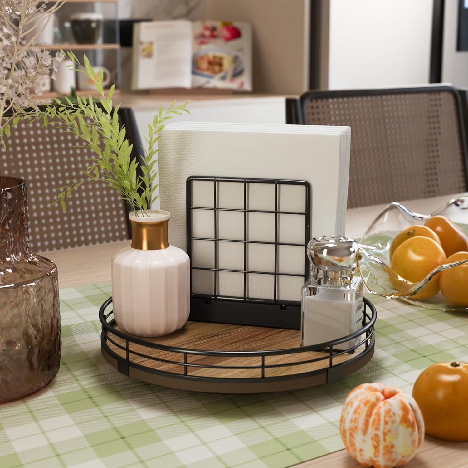 - Exquisite Texture- A turntable to meet your many home needs. Place it in your cabinet to easily store and access food, condiments, cans, medicines and more. As a coffee table tray, perfect for displaying napkin holders, vases, candles. Use it as a bathroom vanity tray to store lotions, perfumes, cosmetics, keep your life organized!