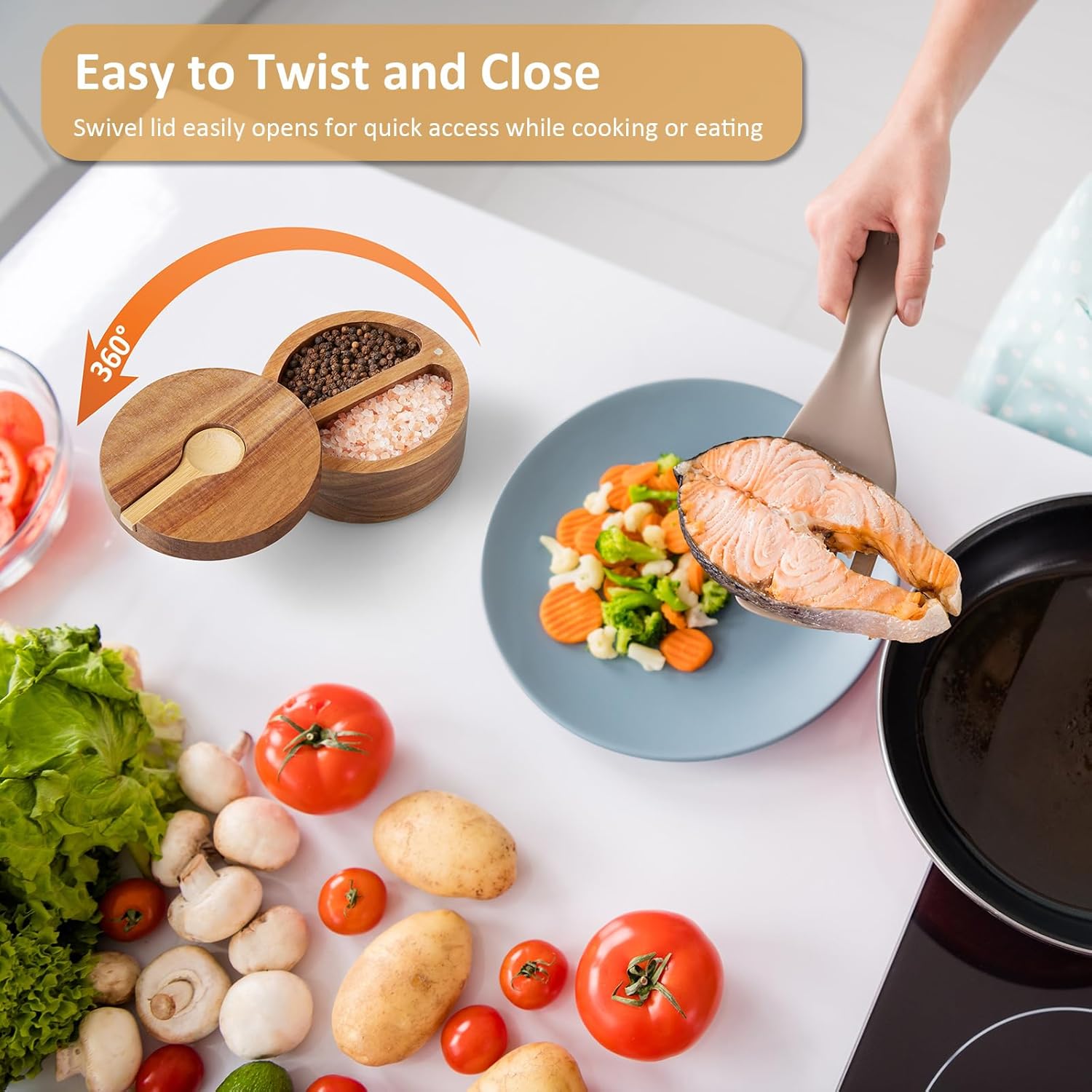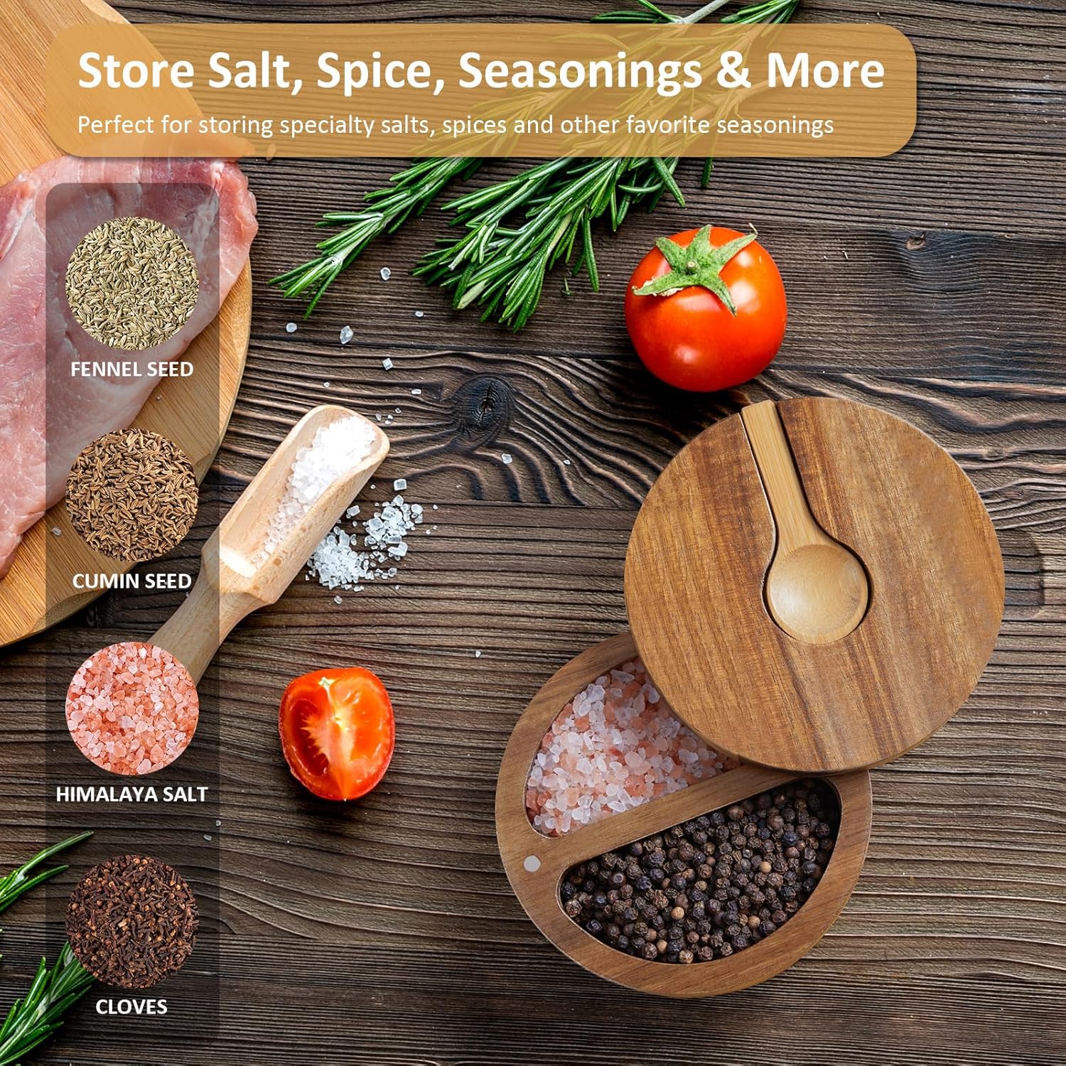 - Acacia Salt Box: This stylish salt cellar features a swivel lid, making it perfect for keeping your favorite spices easily accessible. It's ideal for storing specialty salts, spices, or even small household items