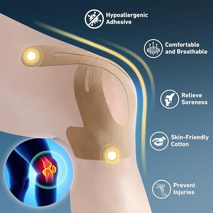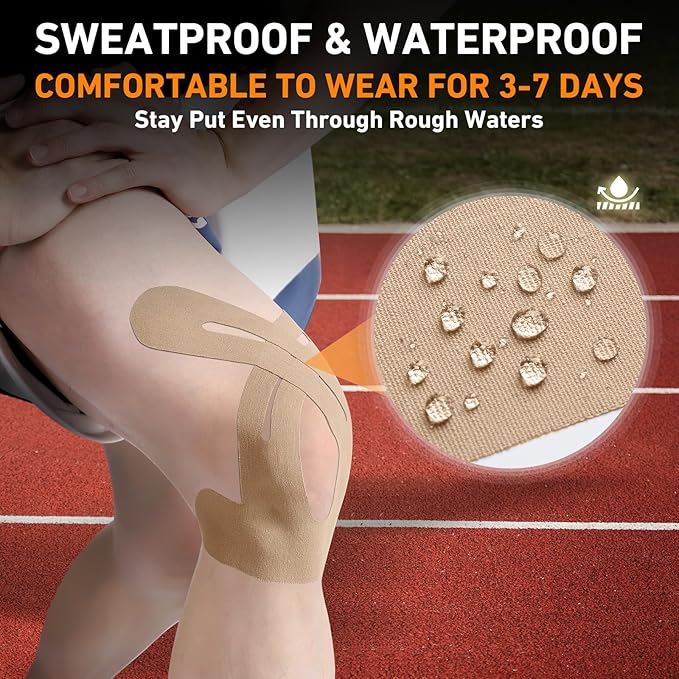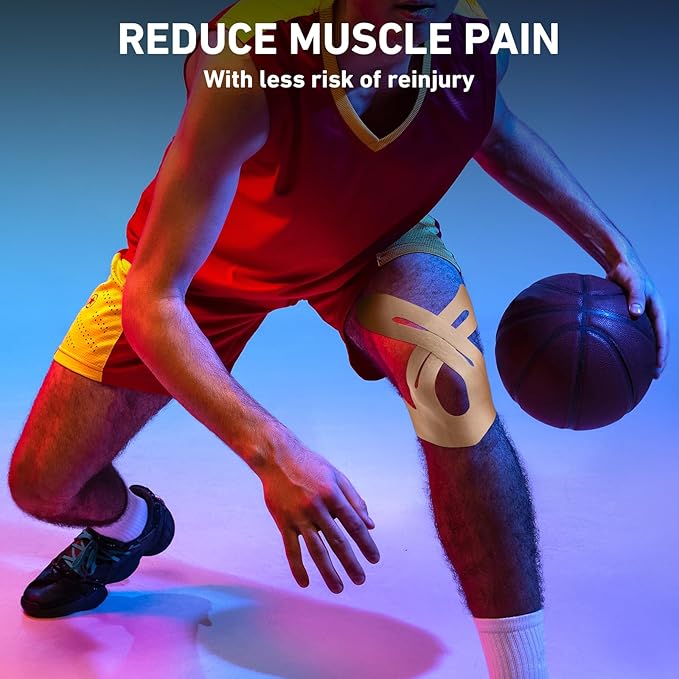 - BREATHABLE AND SKIN-FRIENDLY COMFORT - This k tape for knee features improved airflow and a hypoallergenic design to prevent irritation. The athletic tape is lightweight and flexible, ensuring all-day comfort.