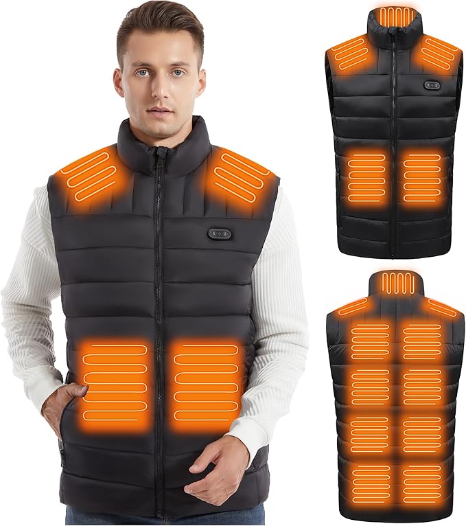 • 【2024 Newest Heated Vest】Equipped with the latest heating technology, featuring 15 high-efficiency carbon fiber heating zones for comprehensive and uniform warmth. The upgraded design targets key areas like the neck, back, abdomen, and waist, providing maximum comfort in cold outdoor conditions. Designed for a comfortable fit, allowing free movement without any discomfort or restriction.