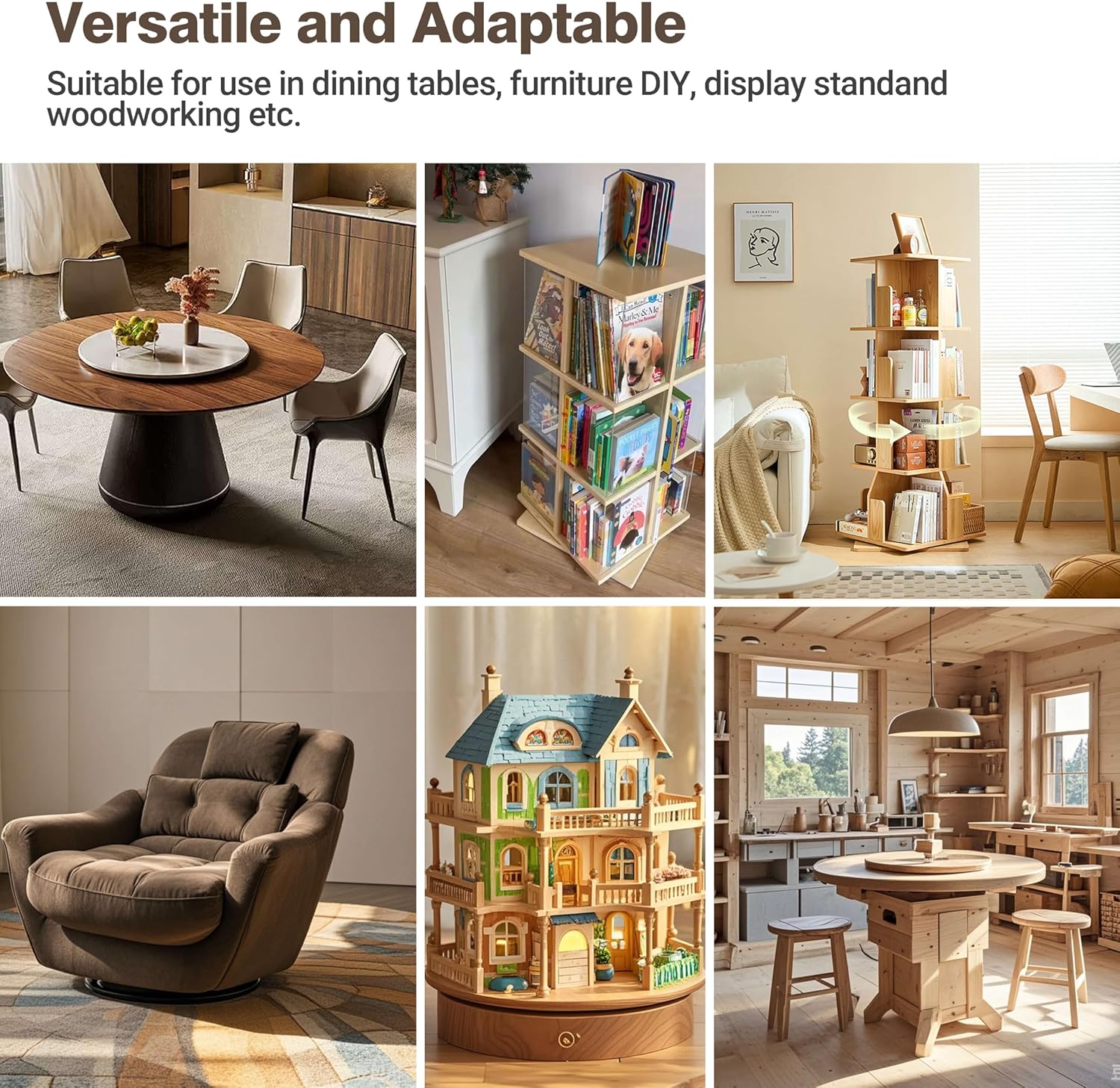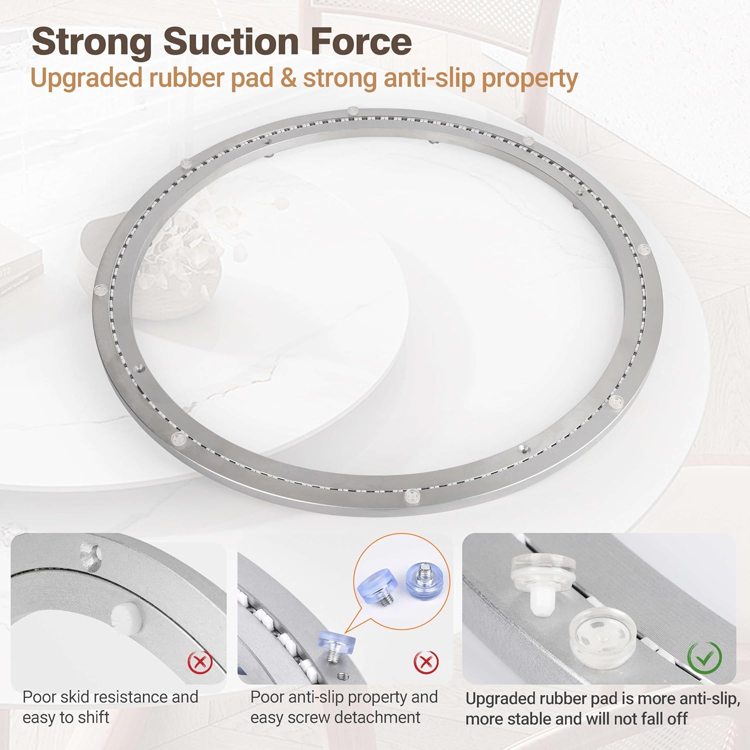 - SMOOTH ROTATION: The lazy susan bearing has 8 non-slip rubber feet, high-density steel balls sound-absorbing strip in the bearing enable you to rotate smoothly and evenly without effort