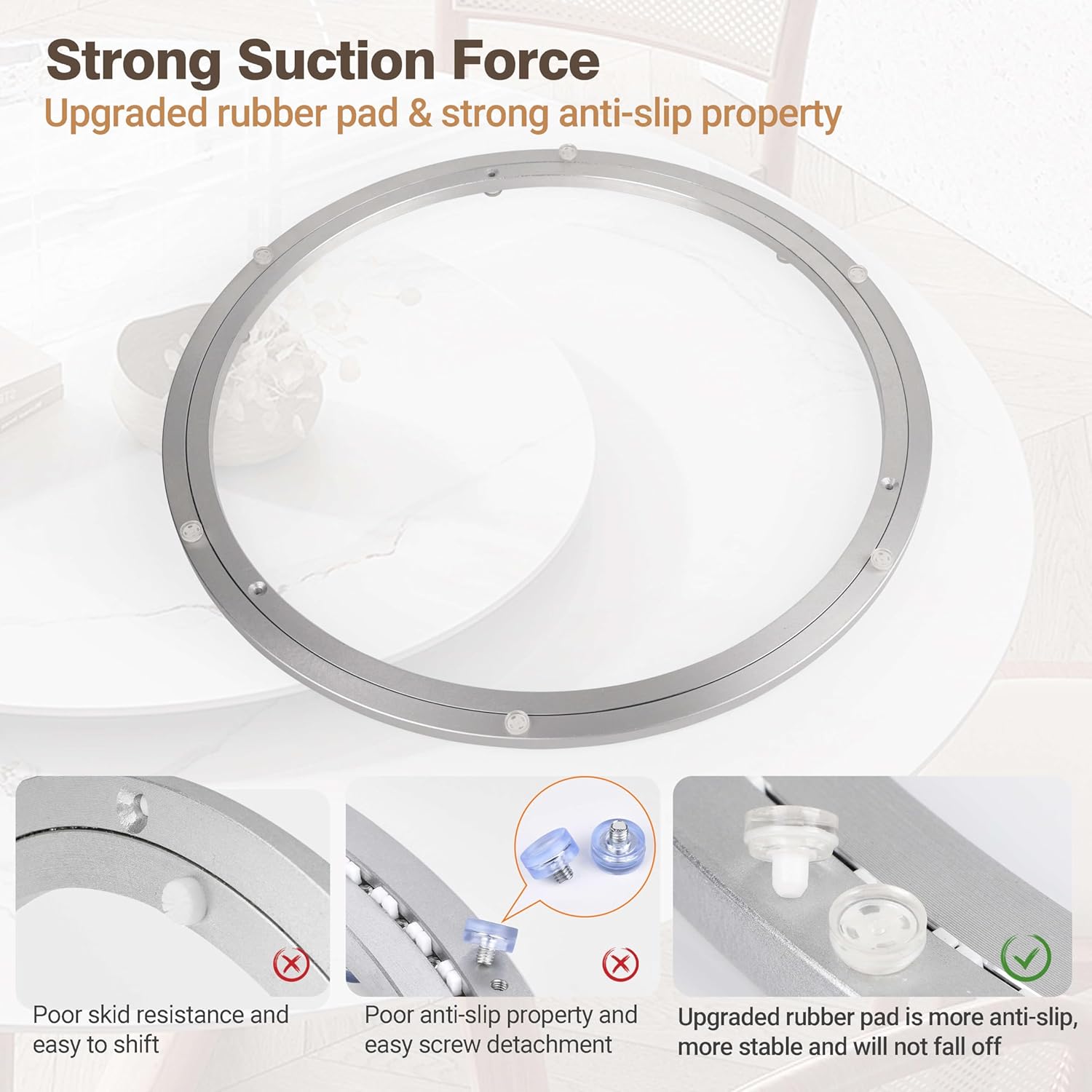 - SMOOTH ROTATION: The lazy susan bearing has 6 non-slip rubber feet, high-density steel balls in the bearing enable you to rotate smoothly and evenly without effort