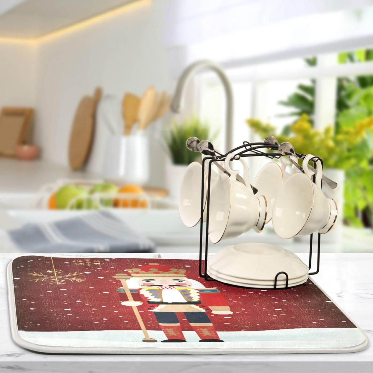 Nutcracker Christmas Dish Drying Mat for Kitchen Counter Absorbent Microfiber Drying Pad, Large 18x24 in, Reversible Drainer Mats