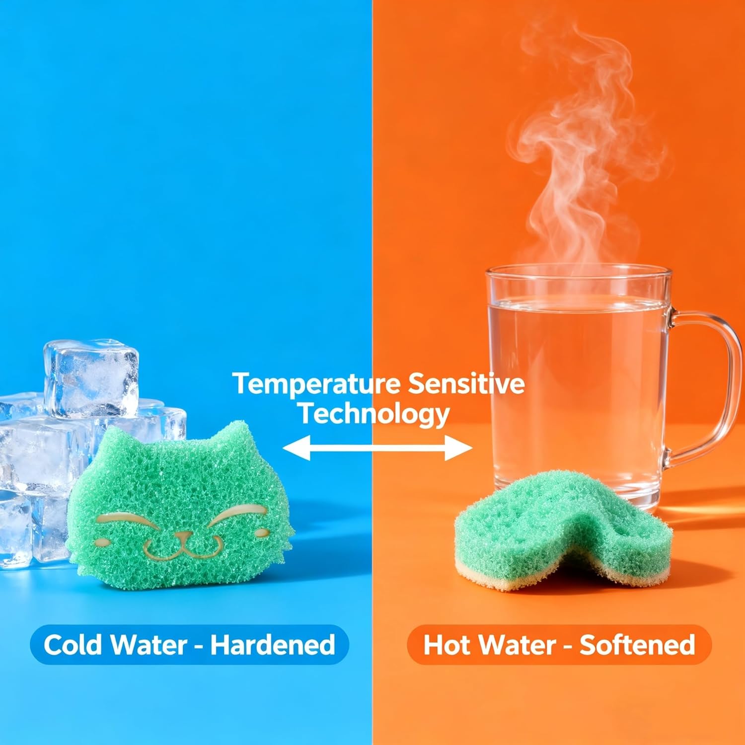 - Smart Temperature Response: Material adapts to water temperature - stays firm in cold water for tough grease removal, softens in warm water for delicate surfaces. Perfect for stainless steel, non-stick pans, and glassware.