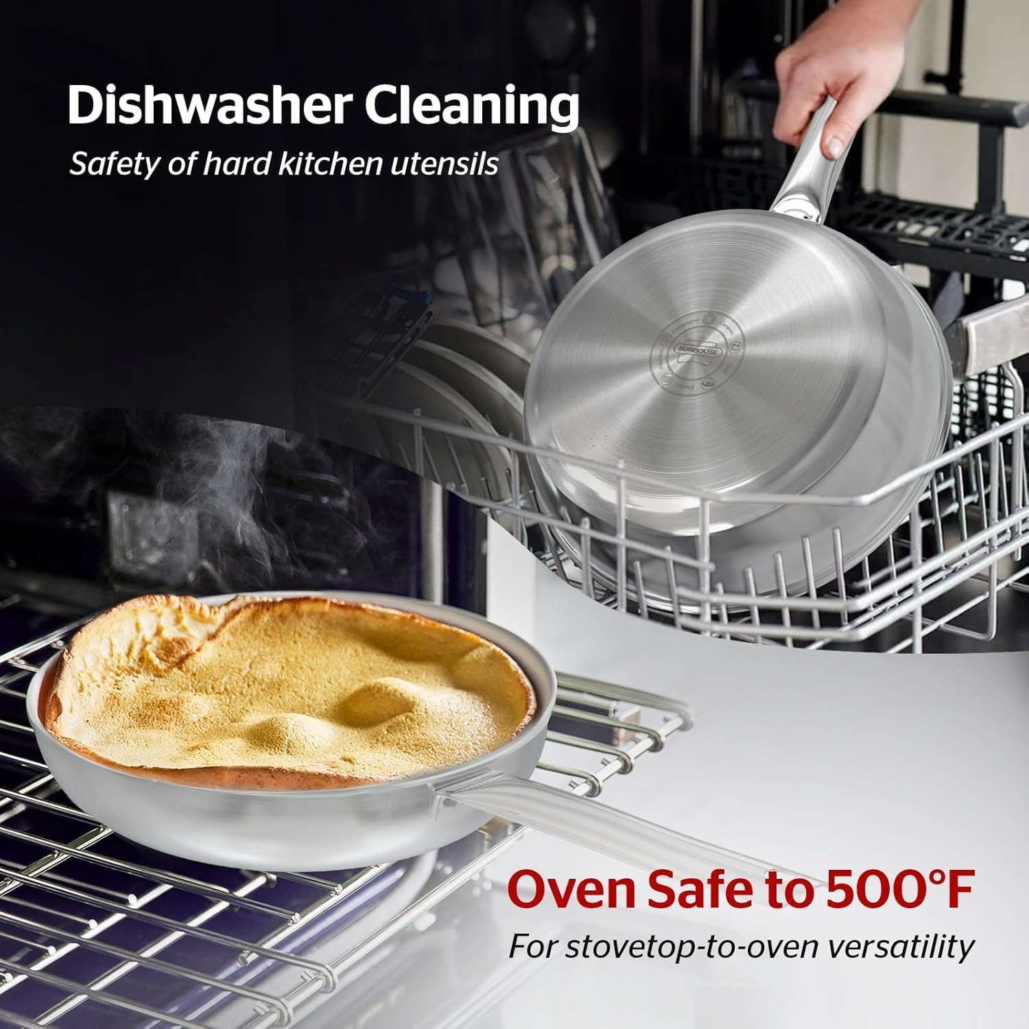 Sunhouse 18/10 10 Inch Stainless Steel Frying Pan, Whole-Clad No Coatings Skillet with Stay-cool Handle for Cooking, Durable & Oven Safe to 500°F, Dishwasher Safe, Compatible with All Cooktops