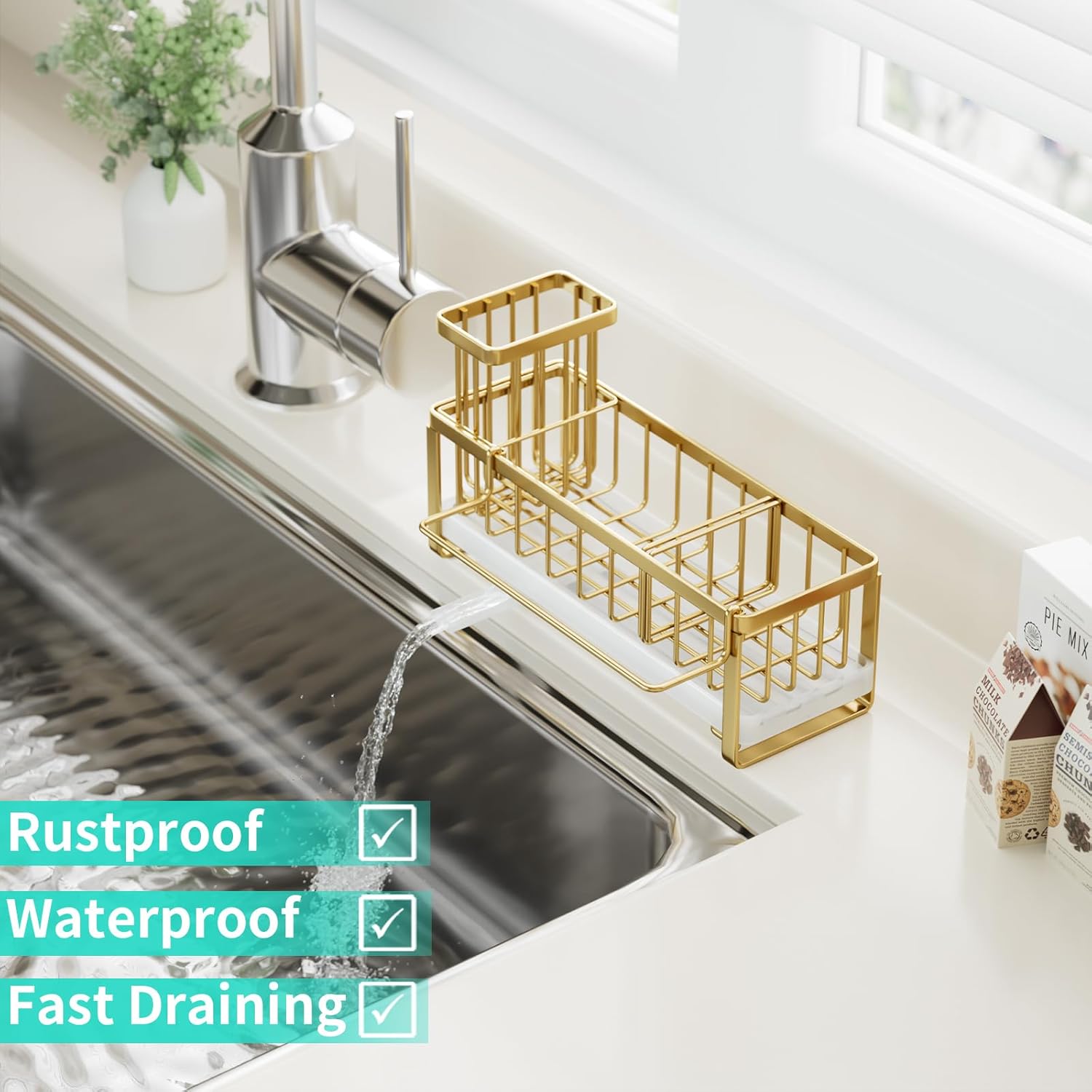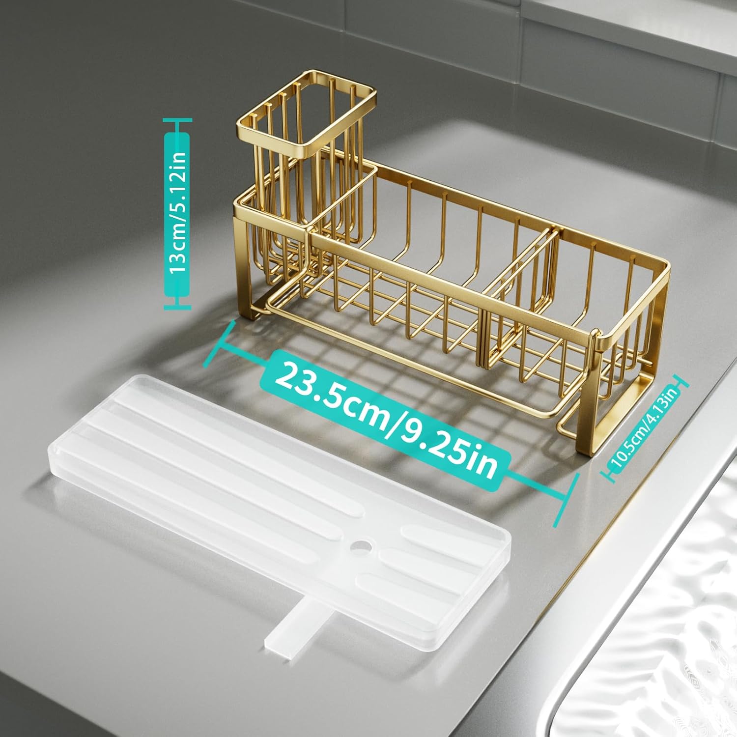 - [Reasonable Size & Support]: The size of our sink organizer is 9.25*4.13*5.12 inches. Our sponge caddy for kitchen sink can meet your daily needs well. If you are not satisfied with this sink caddy kitchen sink organizer, please reach out to us