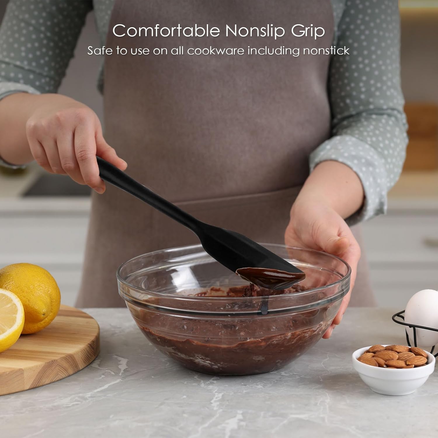 Silicone Spatula Set - Heat Resistant & Food Grade - 4 Piece Nonstick Rubber Spatulas for Baking and Cooking, Dishwasher Safe Kitchen Utensils (Black)