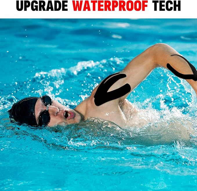 - 【Waterproof Kinetic Tape】We have upgraded the cotton material and adhesive of the kinetic tape, and adopted a unique water ripple design to make our muscle tape water resistant and sweat resistant. They can stick tightly to the skin all the time, even after multiple sweating and showering, the tape remains securely in place