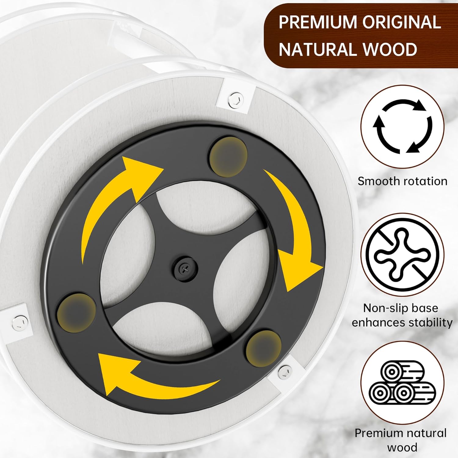 Lazy Susan Organizer 2 Tier - 9.2" Turntable Spice Rack for Table Top, Wooden Rotating Lazy Susan for Cabinet Pantry Kitchen Countertop Dining Table Cupboard Bathroom Vanity Storage(White)