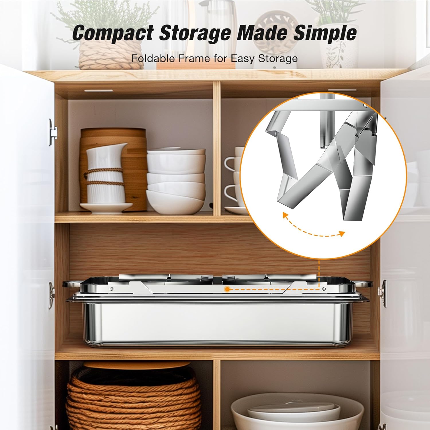 - FOLDABLE & STURDY DESIGN FOR STABILITY - Built with a thickened, foldable frame, these chafing dishes offer enhanced support and stability for heavier food loads. The foldable design makes storage and transport easier for mobile catering, parties, and tight kitchen spaces