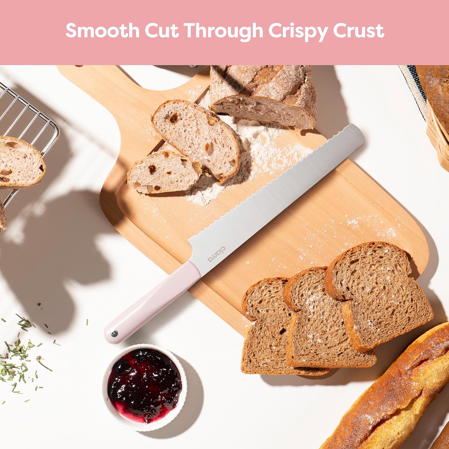 CIARRA Professional Kitchen Knife Set 4 PCS - Chef Knife Set, Bread Knife, Utility Knife, High Carbon Stainless Steel Cooking Knives with Gift Box (Pink)