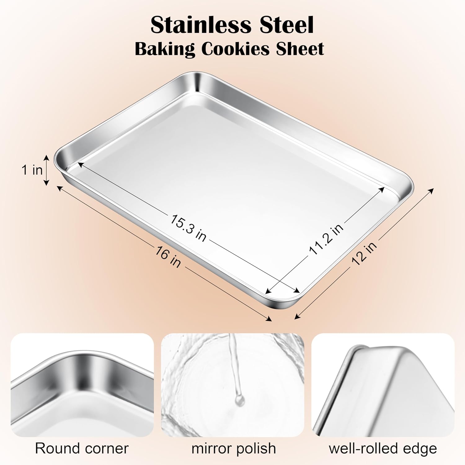 - 【BAKING EVENLY】 Pure stainless steel provides excellent heat conductivity for perfectly browned food, With flat bottom ensures even and uniform baking for good baking performance, Make it ideal for baking cookies/bacon/chicken or cooking large meals