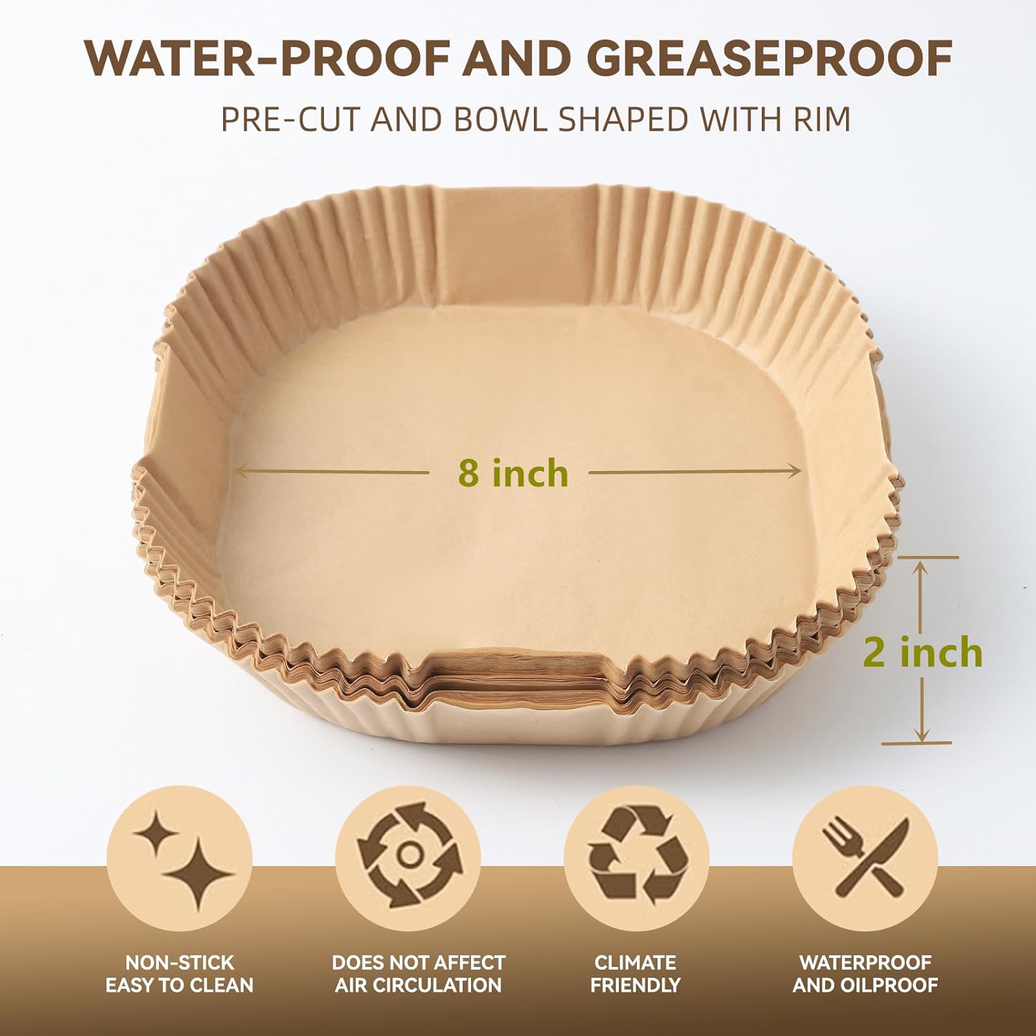 - Material:Made of high-quality parchment paper, providing a non stick surface to ensure even cooking of your food while preventing it from sticking to the basket. No need to scrub or soak again!
