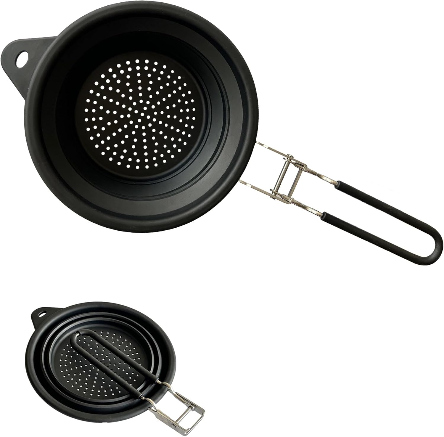 Silicone Collapsible Colander with Handle,Home/RV Kitchen Space Saving Silicone Colander,Drainage of Food,Vegetables,Fruits (Black)