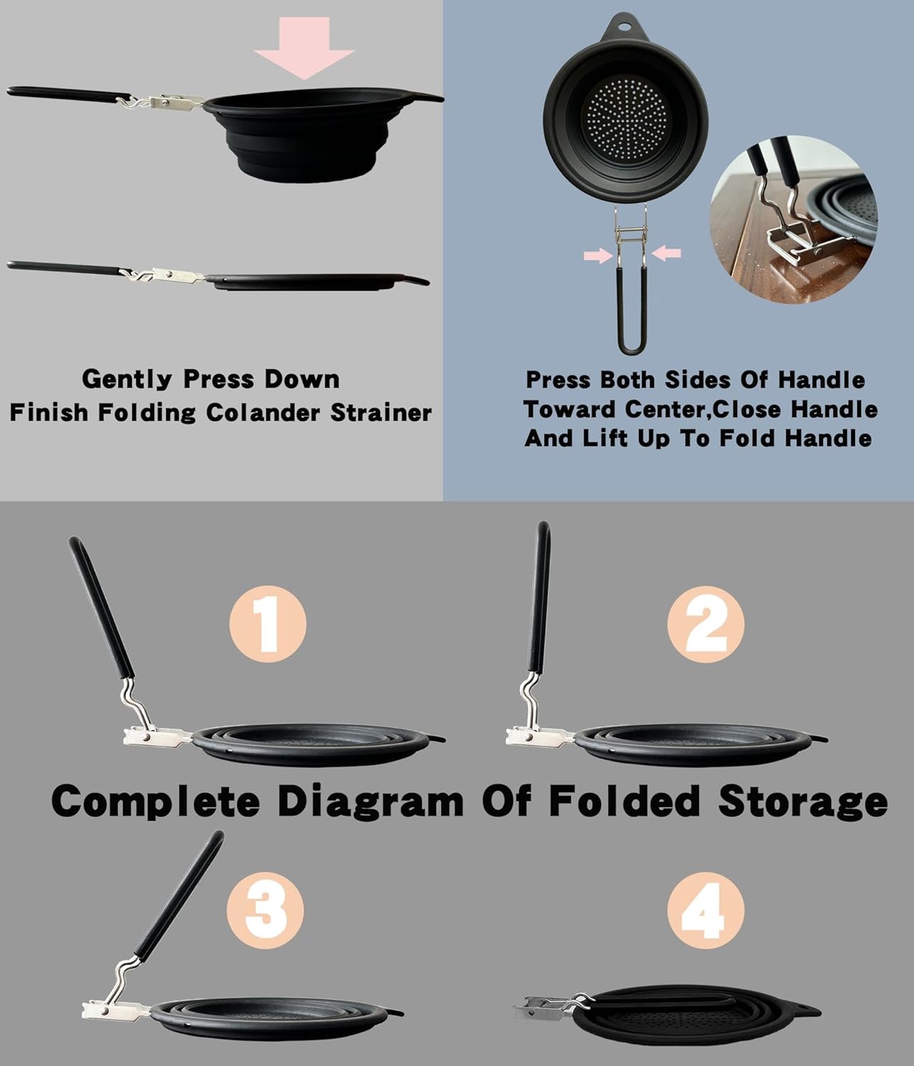 - Style : Silicone Collapsible Colander with Handle