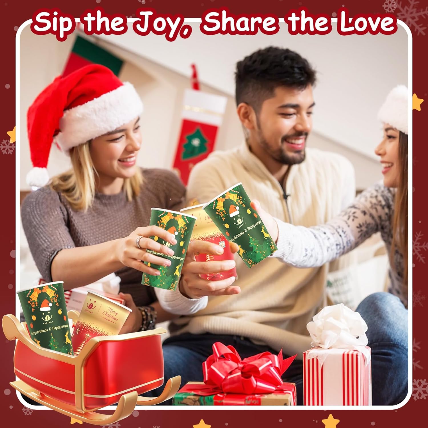 Christmas Coffee Cups, 50 Pack Party Decor, To Go Paper Hot Cups for Chocolate, Cocoa, Coffee (Red, 16 Ounce)