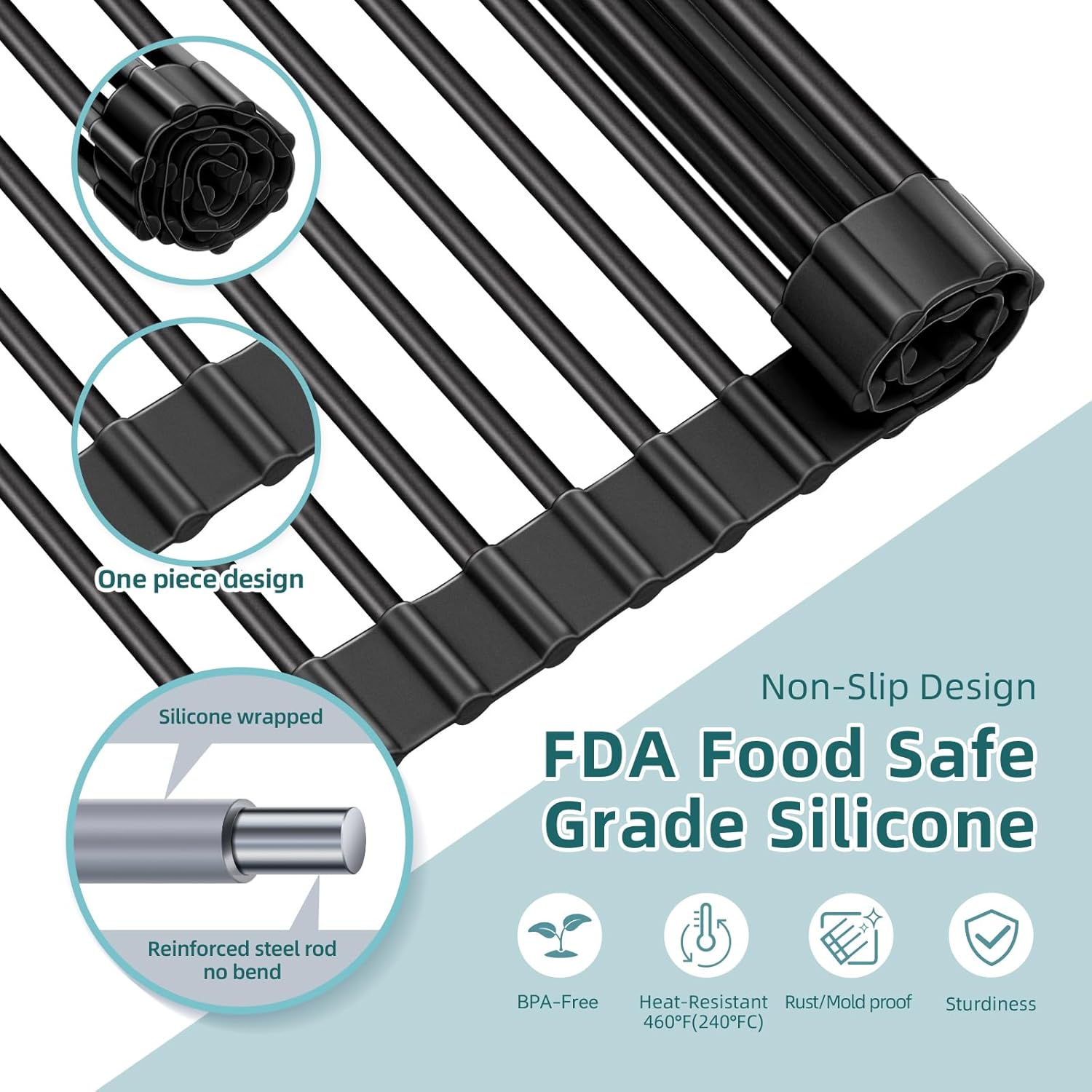 Ohuhu Sink Drying Rack, 20.5" W x 16.1" L Over Sink Roll-Up Dish Drainer - Rolling Foldable Accessories Heat-Resistant Mat Anti-Slip Silicone Coated Multipurpose for Kitchen Counter