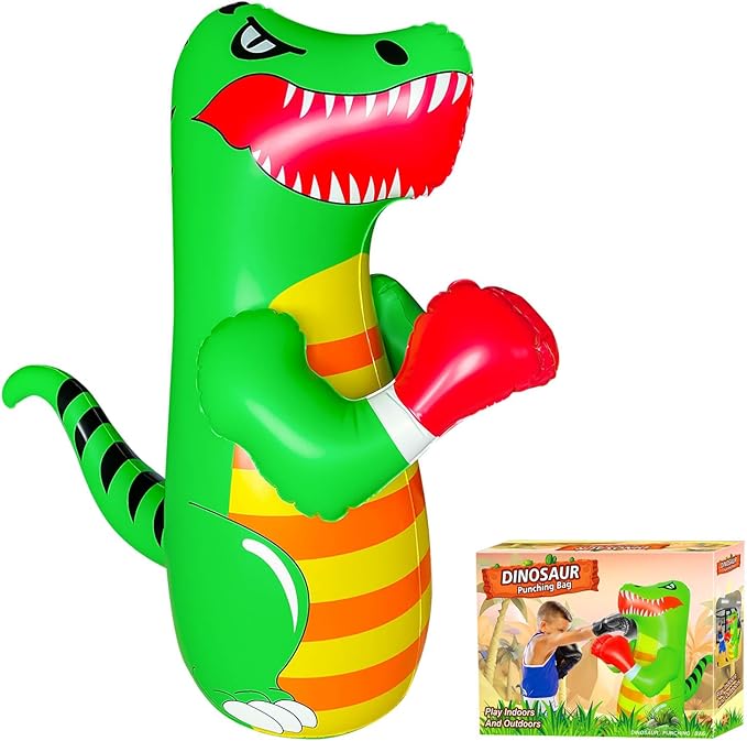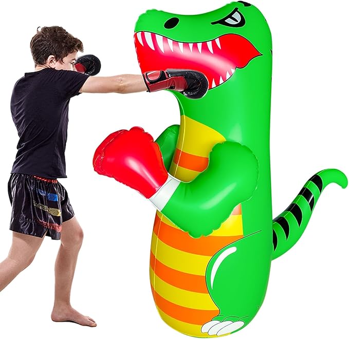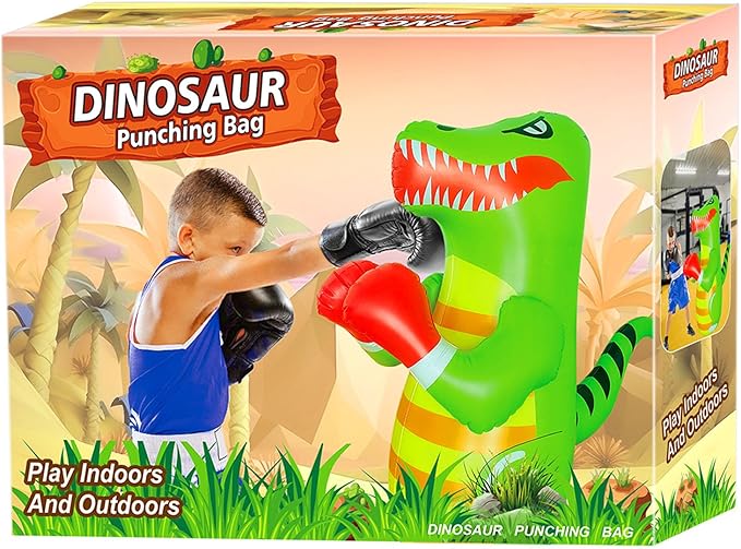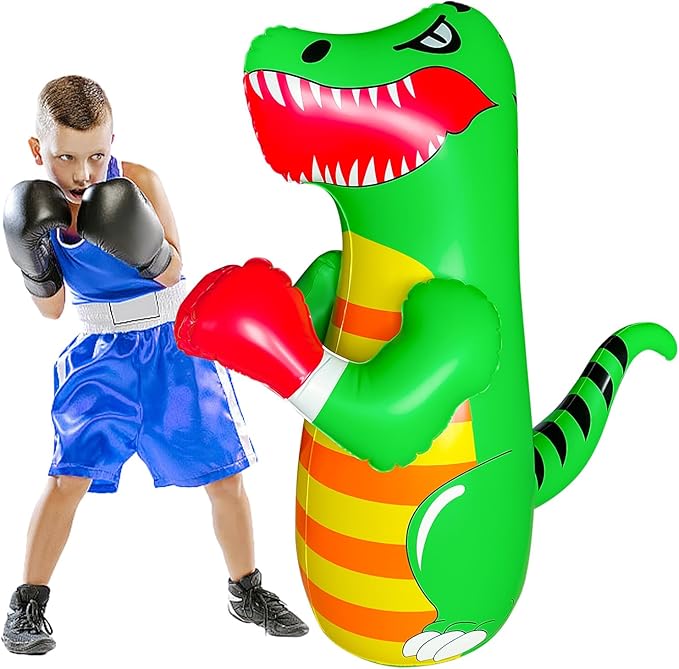 47" Punching Bag for Kids 3-8 Toddler Boxing Bag Inflatable Dinosaur Bopper Birthday Presents for Boys & Girls Sports Toys Outdoor Activities Yard Games