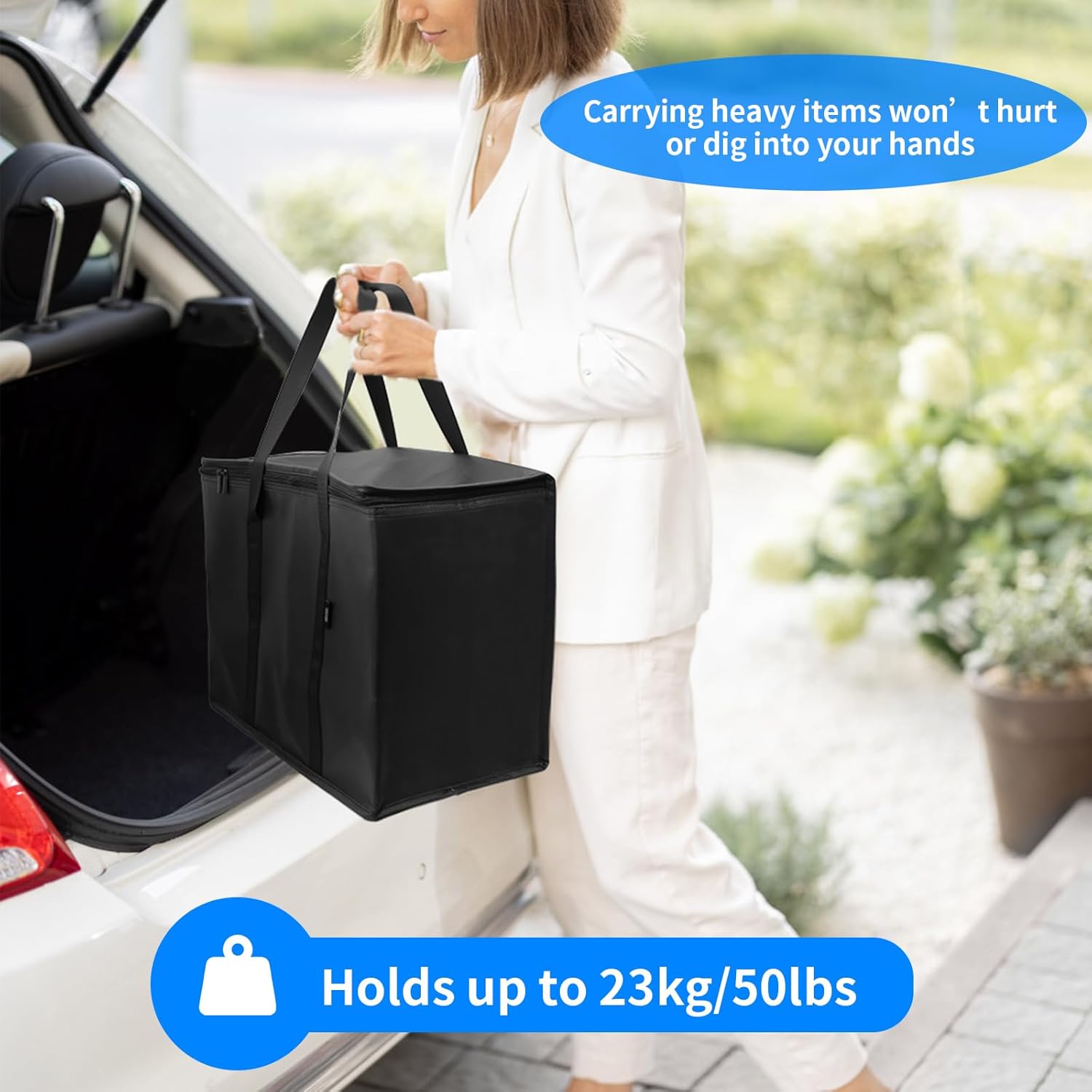 - 【Spacious and Heavy-Duty】:With a generous size of 16"L x 9"W x 13"H, these cooler bags for groceries offer a spacious 30L capacity, capable of holding up to 50 lbs (23 kg). Whether you're doing your weekly grocery run or delivering large meals, these reusable grocery totes are designed for convenience and strength. Their durable construction makes them the perfect choice for carrying heavy loads without compromising on quality.