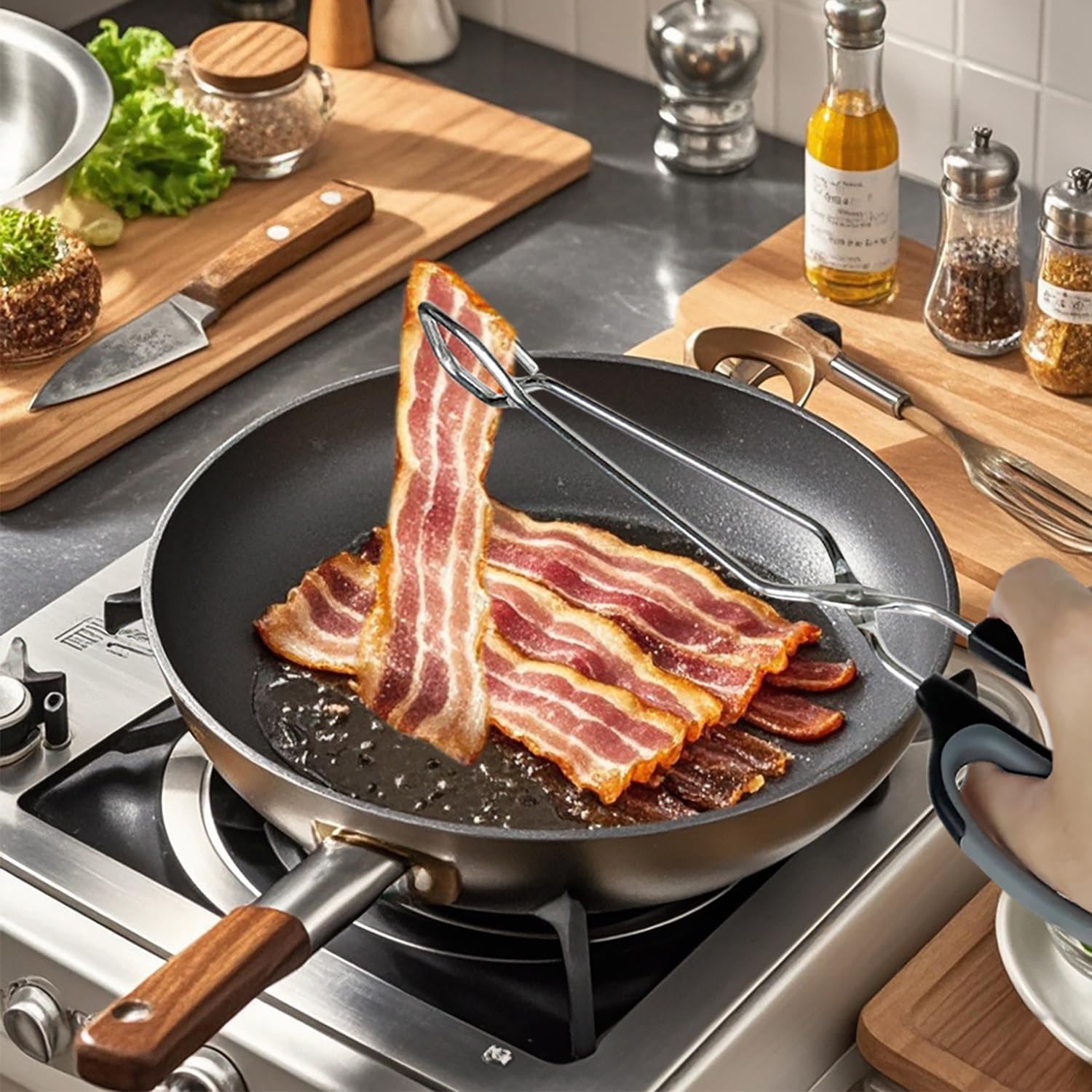 - MULTIPLE APPLICATIONS - The tong gripper has an imprint on metal to prevent food slippage, great for grilling in the kitchen or outdoor barbecue. Works well for turning and lifting meat, fish, crab, chicken, turkey, burger, hotdog, corn, vegetable salad and taco etc.