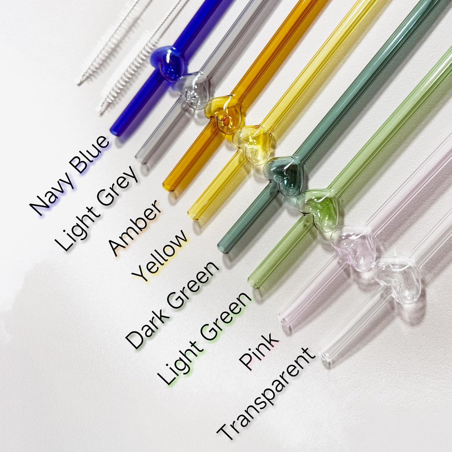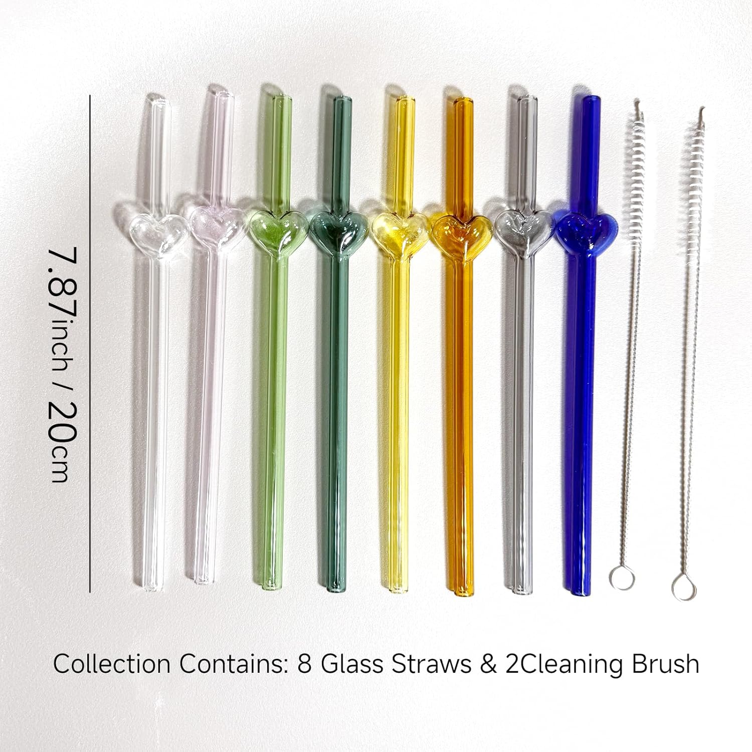 - GLASS STRAWS SET CONTAINS: 8 colorful glass straws with hollow heart, 2 Metal Cleaning Brushes