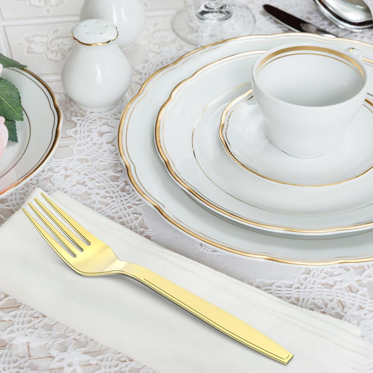 - 【Premium Material】: Dealusy gold plastic forks heavy duty are made of food grade polystyrene, total BPA free and toxin free for your healthy meals.
