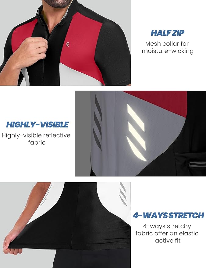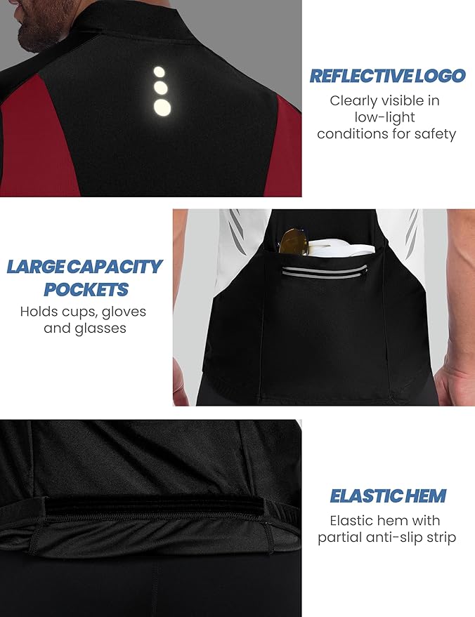 Little Donkey Andy Men's Half Zip Breathable Cycling Vests Reflective Sleeveless Jerseys Lightweight Bicycle Running