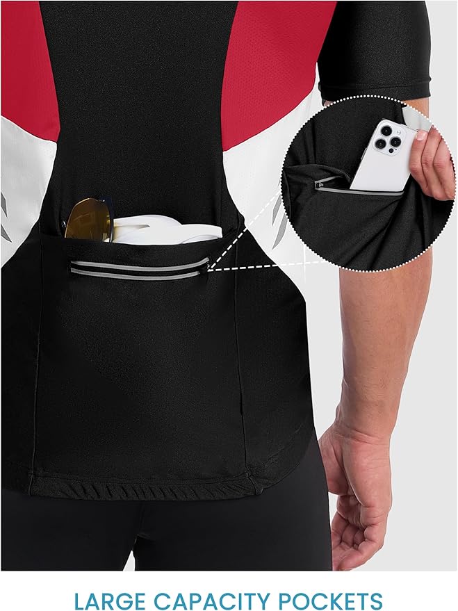 • UTILITY POCKETS: 3 open rear pockets and 1 zipper rear pockets to hold your items like cards, smartphone and hand towel when cycling or running