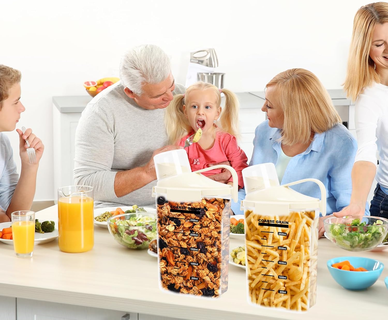 - Bpa Free, Food Grade Plastic: Crafted from high-quality, food grade materials, these clear dry ingredients storage containers are designed to be durable and safe for storing dry products. ATTENTION: PACKAGE INCLUDES: 2 x 2500ML CEREAL DISPENSER(White).