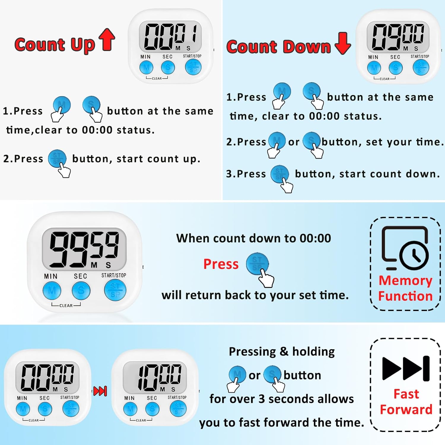 - Digital Timers: Large screen, bold digits for easy read and the buzzer is loud that you can hear clearly even in another room to remind you on time.