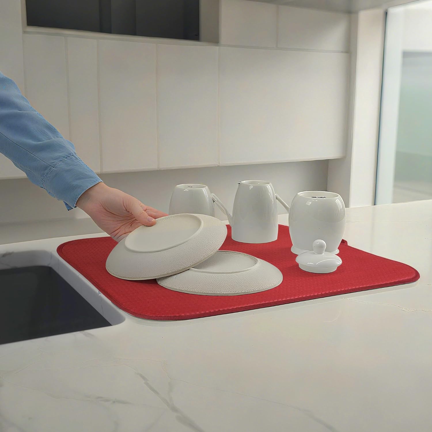 2 Pack Dish Drying Mat for Kitchen Counter, Super Absorbent & Anti-Slip, Machine Washable, 15" x 20" (Red)