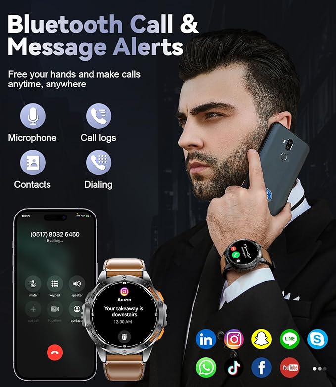 - 📞【Bluetooth Calling & Message Notifications】 This men's smartwatch features advanced Bluetooth 5.3 technology, allowing you to easily answer and reject calls. The smartwatch for men is equipped with a high-quality speaker and microphone, ensuring clear conversations and greatly enhancing usability. You can also receive real-time notifications from social media apps like Facebook, WhatsApp, and Gmail. The smartwatch with calling vibration alert function promptly notifies you of new messages, ensuring you don’t miss any important information. With simple gestures, you can quickly view messages, all from your wrist, avoiding cumbersome processes.