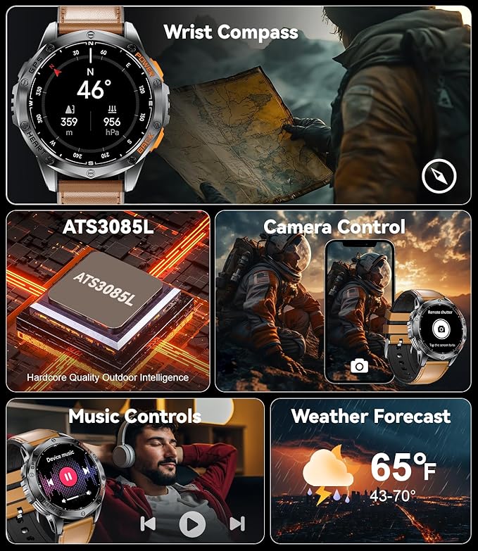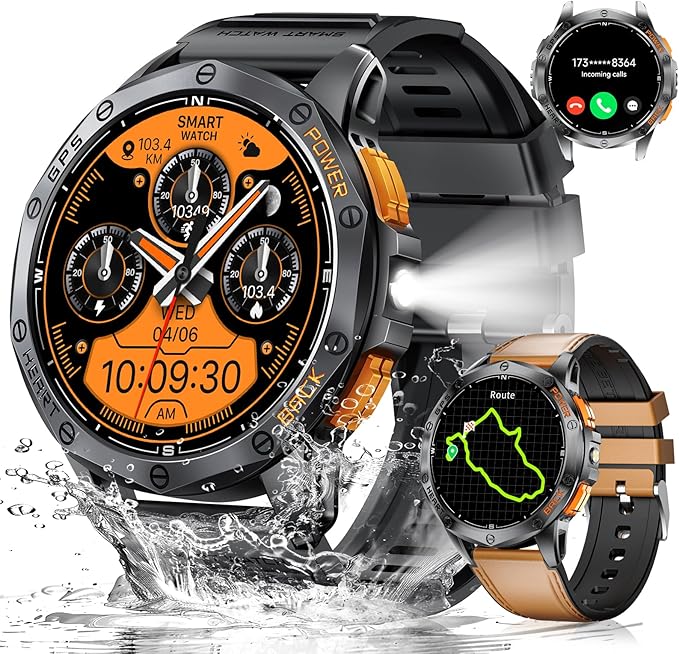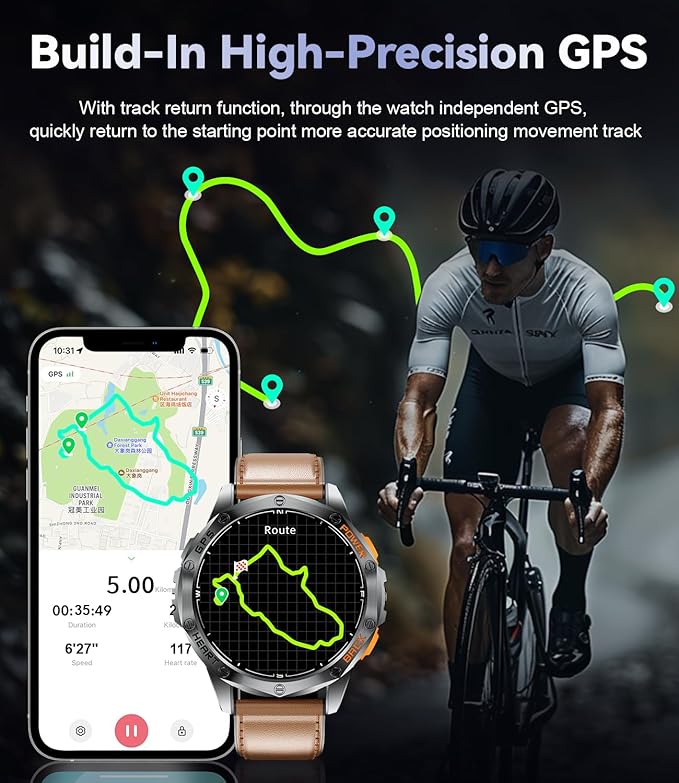 - 🧭【Compass & GPS & LED Flashlight】 This smart watch men supports a compass and GPS, as well as satellite systems including GLONASS, Beidou, Galileo, NAVIC, and QZSS, allowing you to accurately track your route during outdoor activities and providing comprehensive support for your adventures. For outdoor enthusiasts, this feature enhances safety and adds more enjoyment to outdoor activities. And the mens smart watch is equipped with a powerful flashlight function suitable for various situations. Whether you're camping at night, looking for something, or handling an emergency, the flashlight provides ample illumination. (*Note: GPS route tracking should be activated in open areas.)