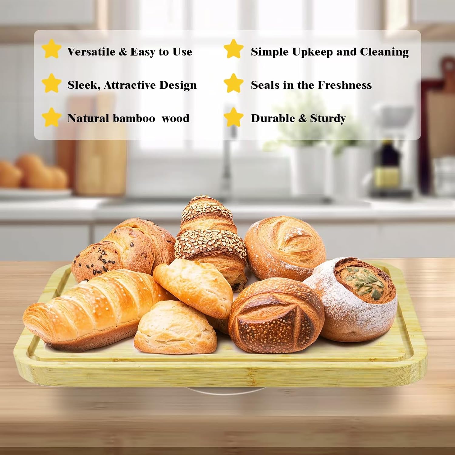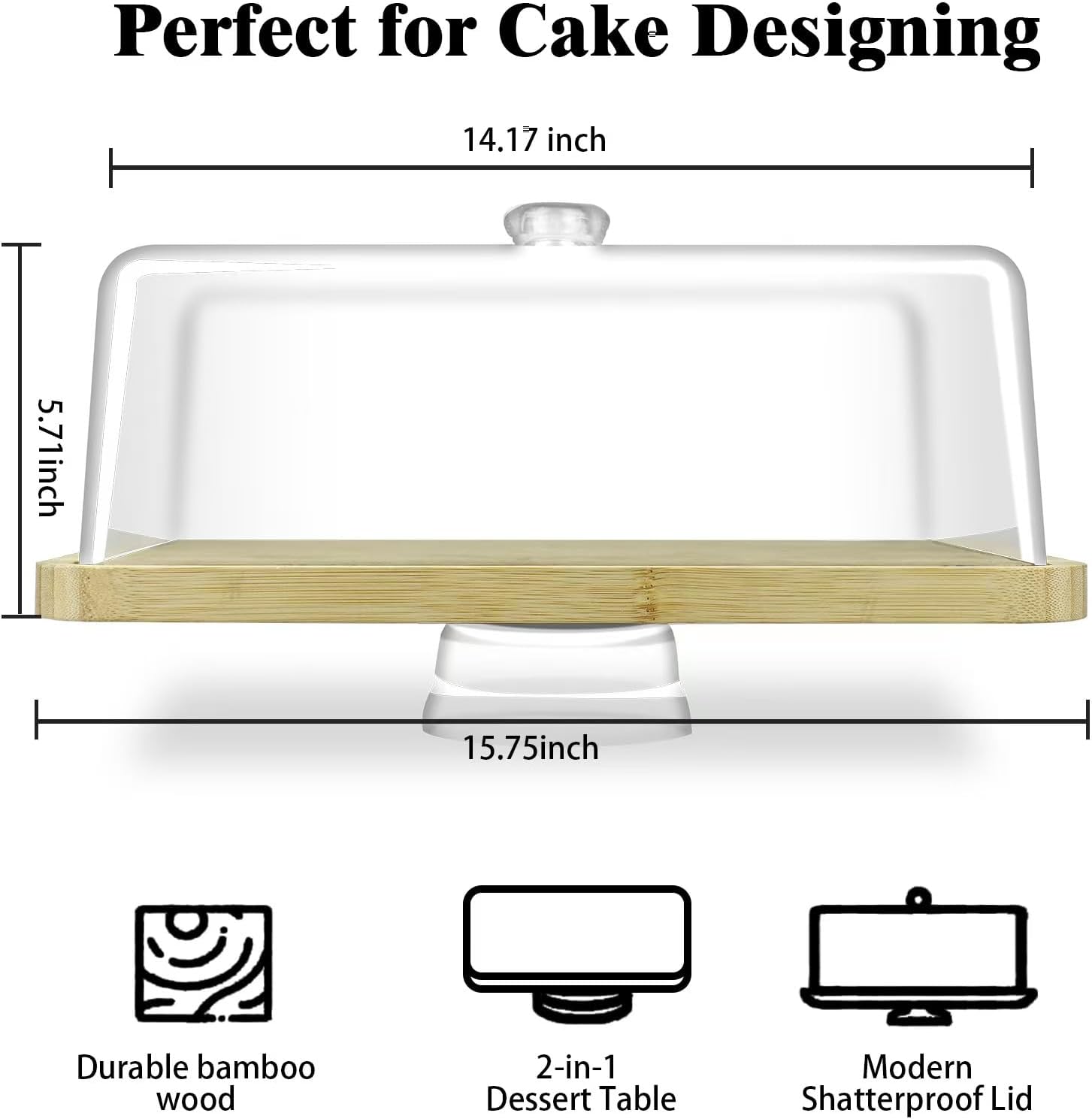 - 【PREMIUM MATERIAL】:Cake stand with lid is made of 100% natural Bamboo,100% food-grade,and thick acacia wood base ensures its durability.This cake stand with dome is different from others with glass dome,our acrylic cake dome is made of shatter-proof acrylic,This cake holder with lid has a certain amount of elasticity, Cake plates with lid is not as fragile as glass and is not easily broken