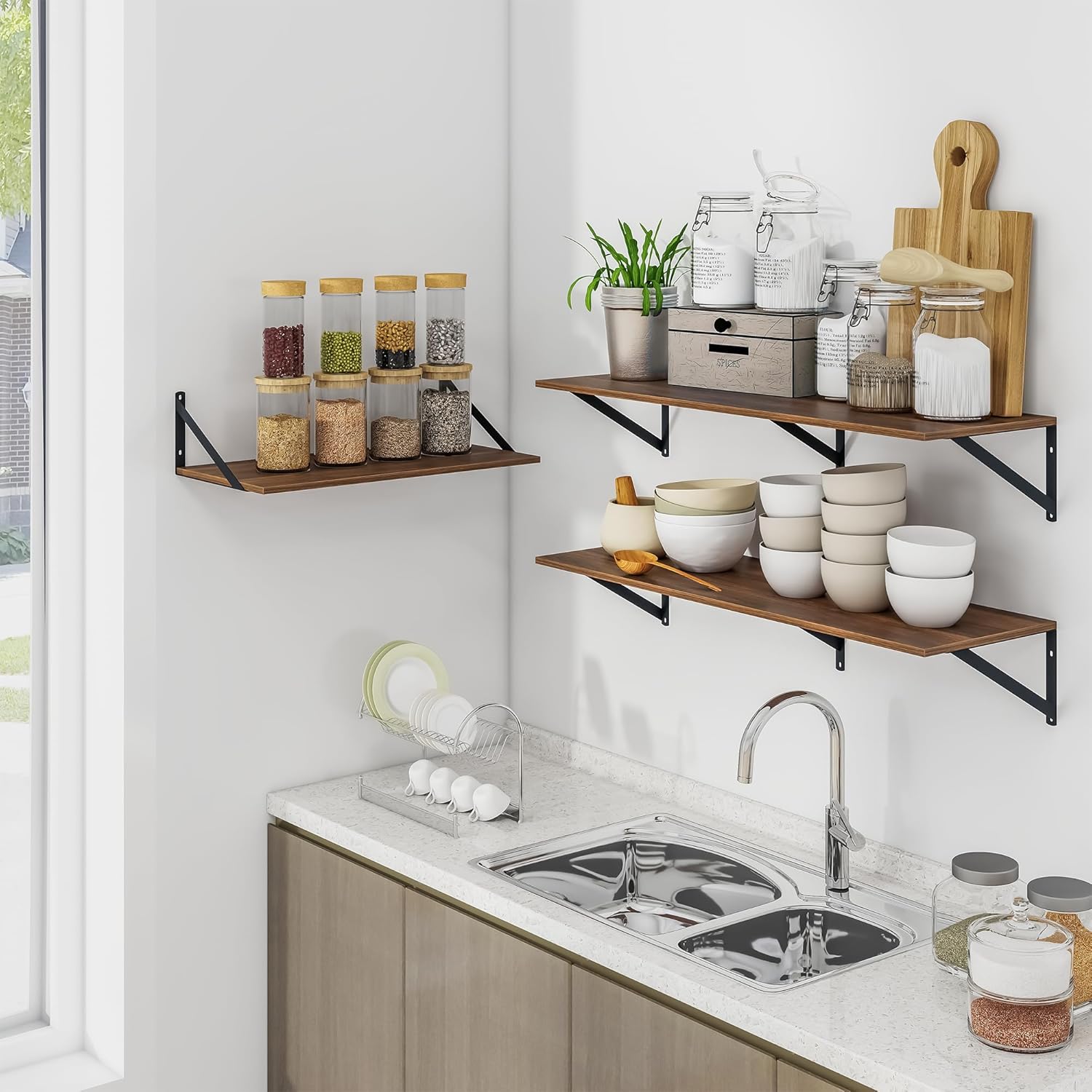 - [Large Capacity Floating Shelves] - Our wall shelves are 36" long x 12" deep, providing ample storage or display space for your kitchen, living room, bedroom, bathroom, laundry room, and more. With such a large space, you can place many items like books, collectibles, plants, crafts, photos, laundry detergent, etc. Our shelf can even be used as a bookshelf or a nightstand. Let our shelves decorate every corner of your home!