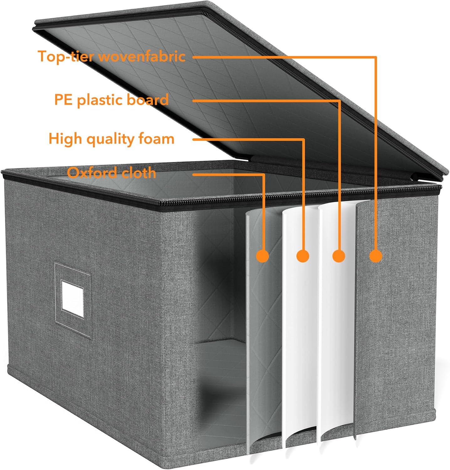 SpaceAid Wine Glass Stemware Storage 2 Pack, China Storage Containers, Hard Shell Quilted Cases with Soft Plate Separators, Moving Supplies Packing Boxes for 24 Glasswares (Grey)