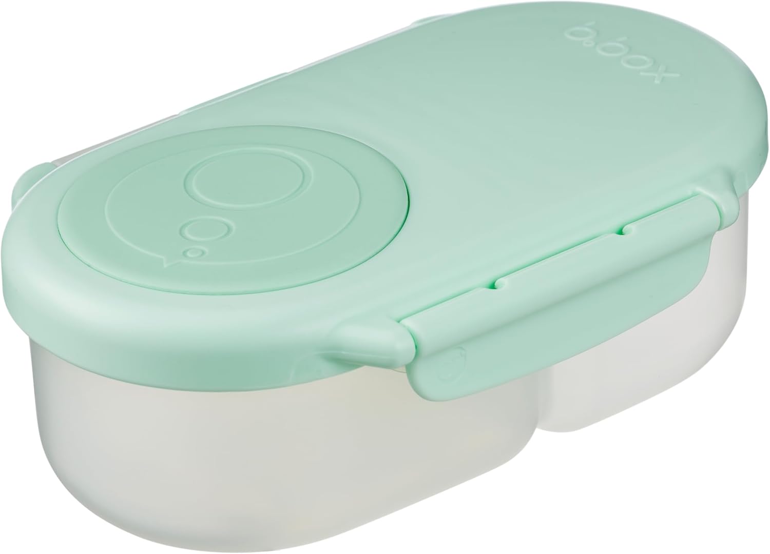 b.box Snack Box Reusable Snack Containers with Lids 2 compartments, Bento Box for kids and toddlers, Leakproof Lunch Box, BPA free and Dishwasher Safe Snack Container (Spearmint, 1 3/4 Cup)