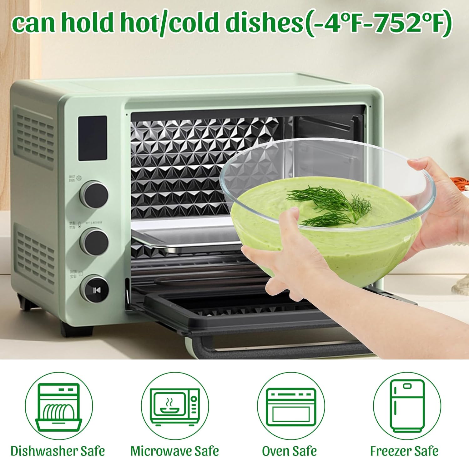 - 【Glass Salad Bowl】: Made of thick and sturdy glass, the salad bowl set is heat/cold resistant to hold hot and cold dishes. It’s freezer/oven/microwave safe for easier preparing and storing food and it’s also dishwasher safe for easier clean. The high borosilicate glass material ensuring durability and long-lasting performance of the glass salad bowl, and it won’t have any odor or toxic, you can rest assured to use it for any purpose.