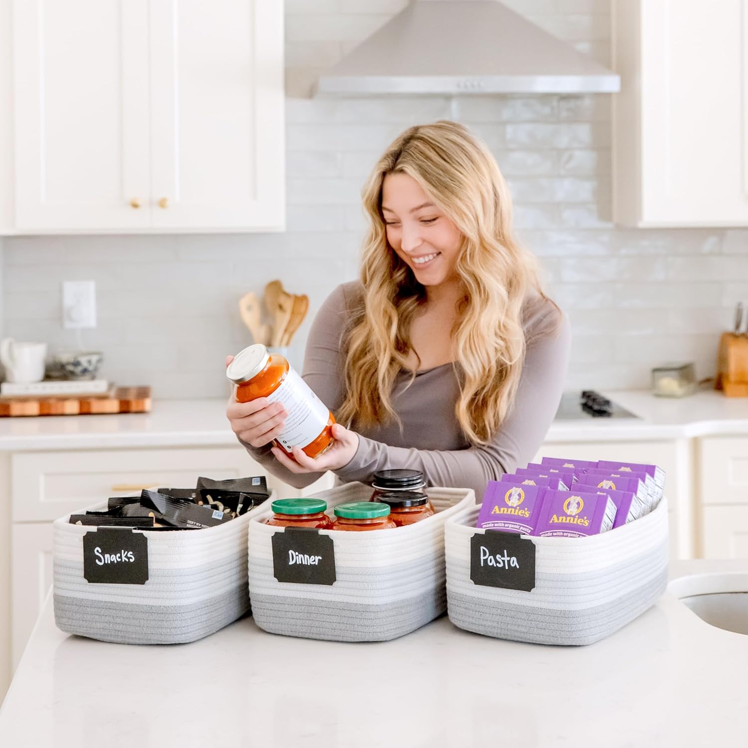 - Safe, Natural Cotton Organizer Bins: Crafted from the highest quality material in the market, our storage bins are oh-so-sturdy (and cute) and ready to take on little humans. They’re 100% safe, so you can rest easy if teething toddlers take a nibble. Reinforced Hidden Handles: Now you see ‘em, now you don’t! With completely hidden handles that blend seamlessly into the rope basket, you’ll be the Houdini of home organizing. They’re even double-stitched and reinforced for extra heavy loads!