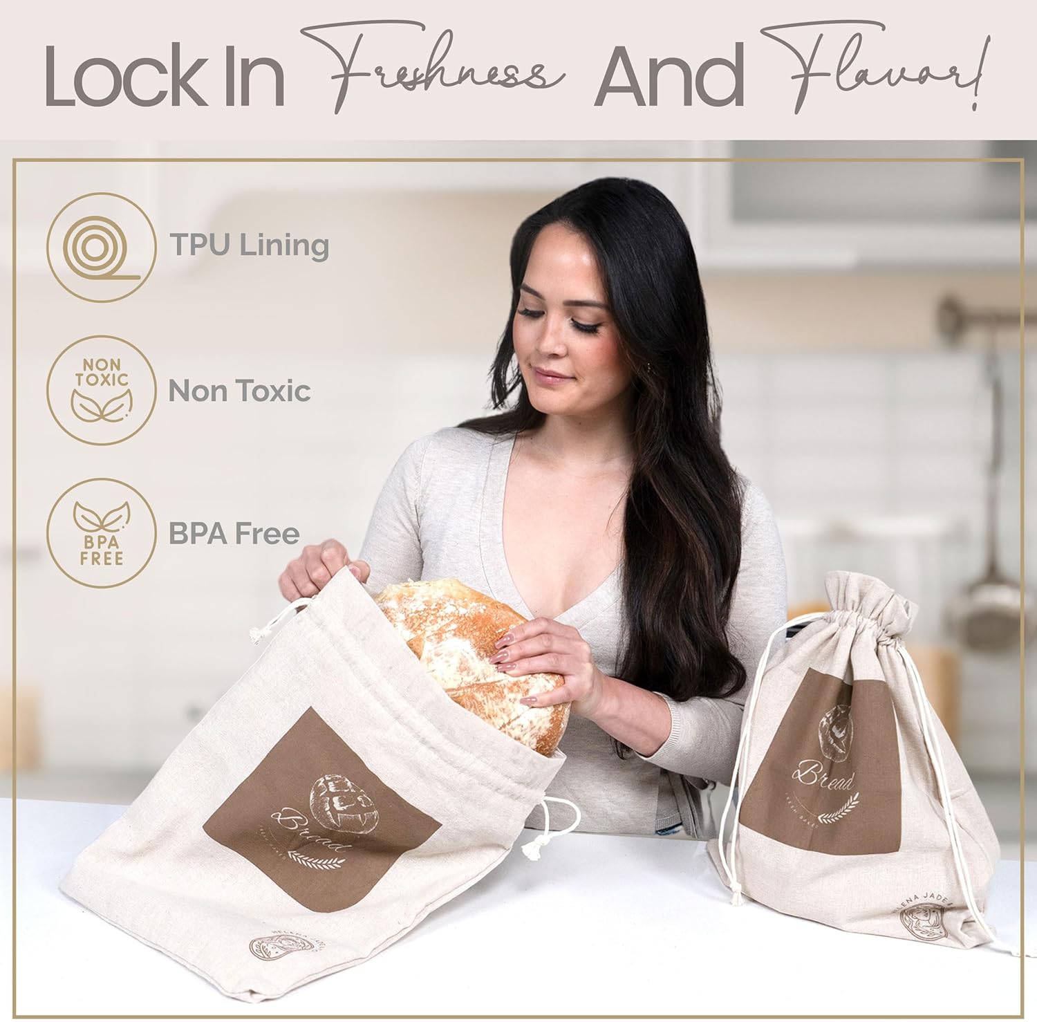 - 𝗗𝘂𝗿𝗮𝗯𝗹𝗲 & 𝗕𝗿𝗲𝗮𝘁𝗵𝗮𝗯𝗹𝗲 𝗠𝗮𝘁𝗲𝗿𝗶𝗮𝗹: Crafted with high-quality linen and a food-safe TPU lining, these bread bags offer long-lasting durability. The BPA-free, non-toxic liner material ensures safe, long-lasting storage for your everyday bread needs.