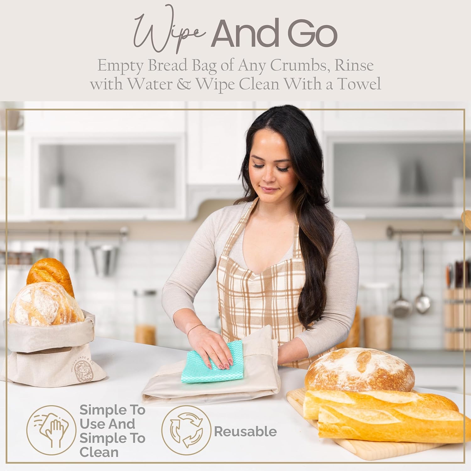 - 𝗞𝗲𝗲𝗽 𝗬𝗼𝘂𝗿 𝗕𝗿𝗲𝗮𝗱 𝗙𝗿𝗲𝘀𝗵 𝗳𝗼𝗿 𝗗𝗮𝘆𝘀: Our reusable bread bags preserve homemade loaves by locking in moisture and maintaining a crisp crust with a soft crumb. The PABA-free plastic lining creates a food-safe barrier that extends freshness, keeping bread flavourful and preventing it from drying out.