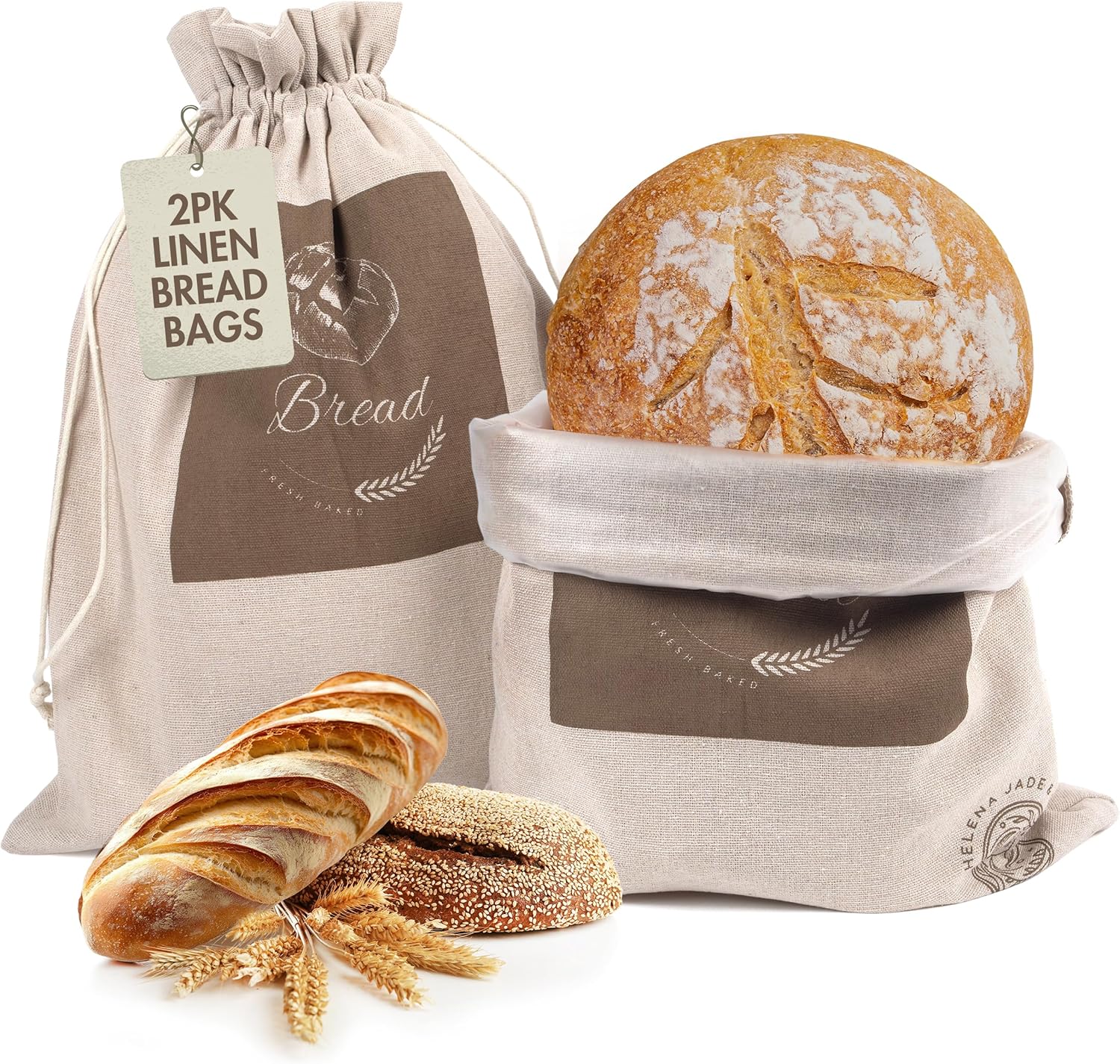 Linen Bread Bags for Homemade Bread – Easy to Clean Large Reusable Cloth Bags for Sourdough, Sandwich & Loaf Storage, BPA-Free Linen Bag with String Closure For Fresh Breads Storage (2 Pack, XL)