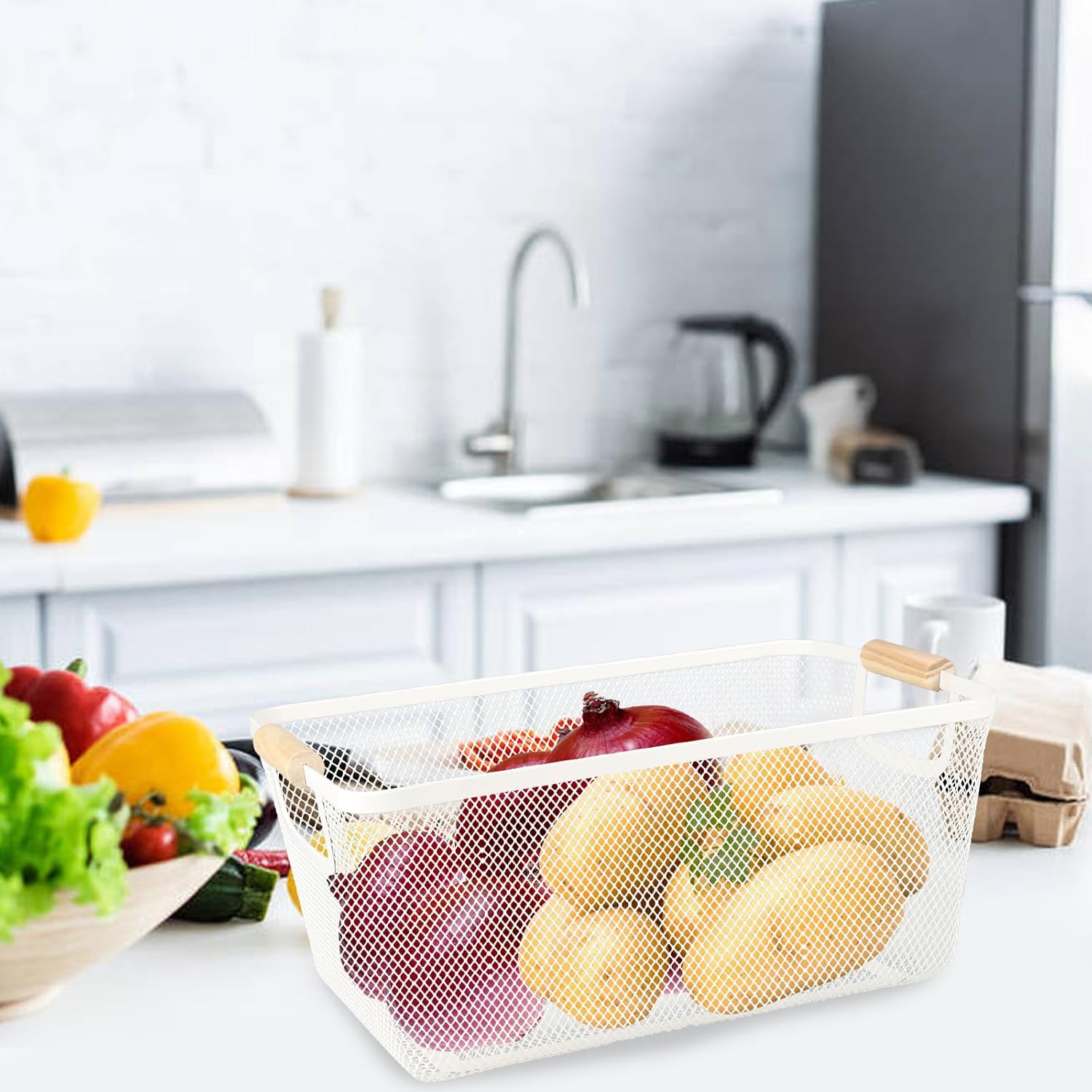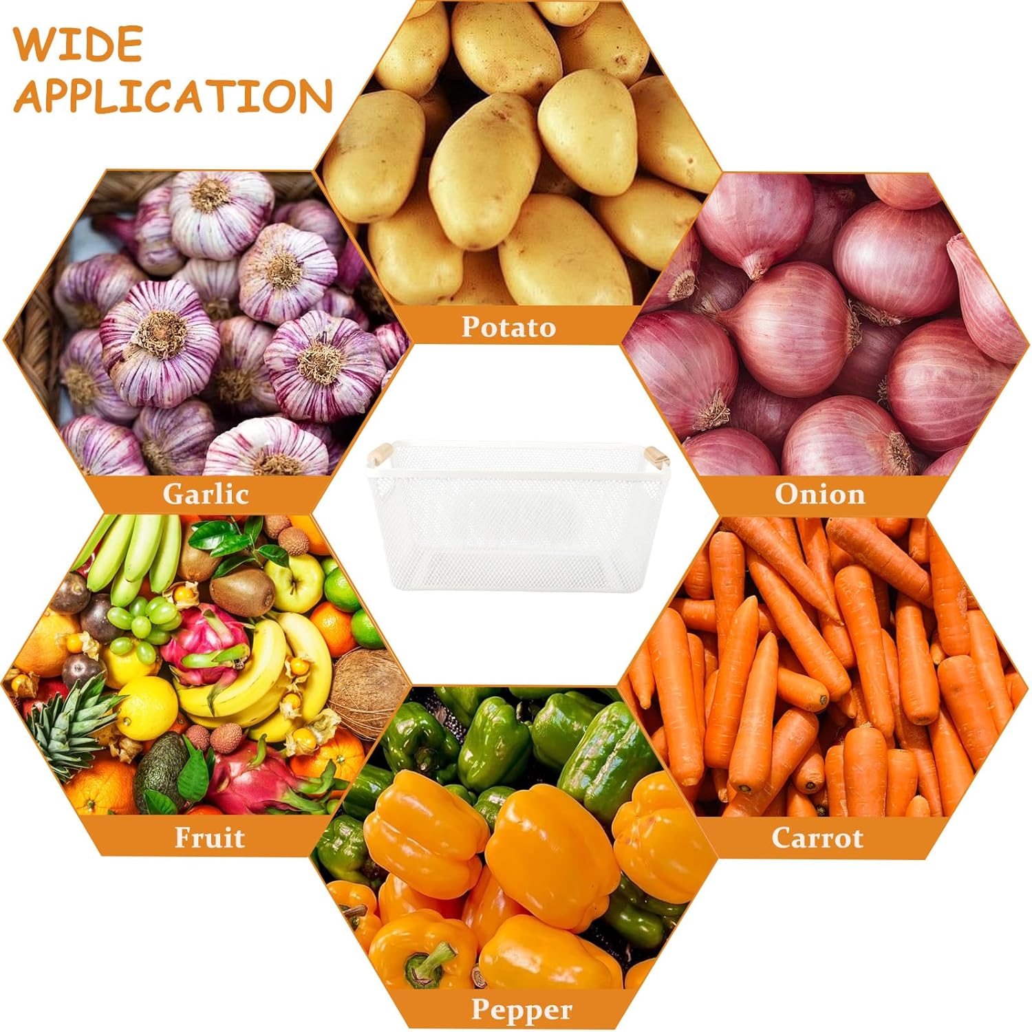 - 1. Storage Basket for Potato Onion: Xbopetda storage organizer baskets are made of premium iron and wood, that is delicately finished with a matte white powder coating, ensures durability, preventing cracking or rusting over time. Durable and reliable material ensures its long-lasting use.