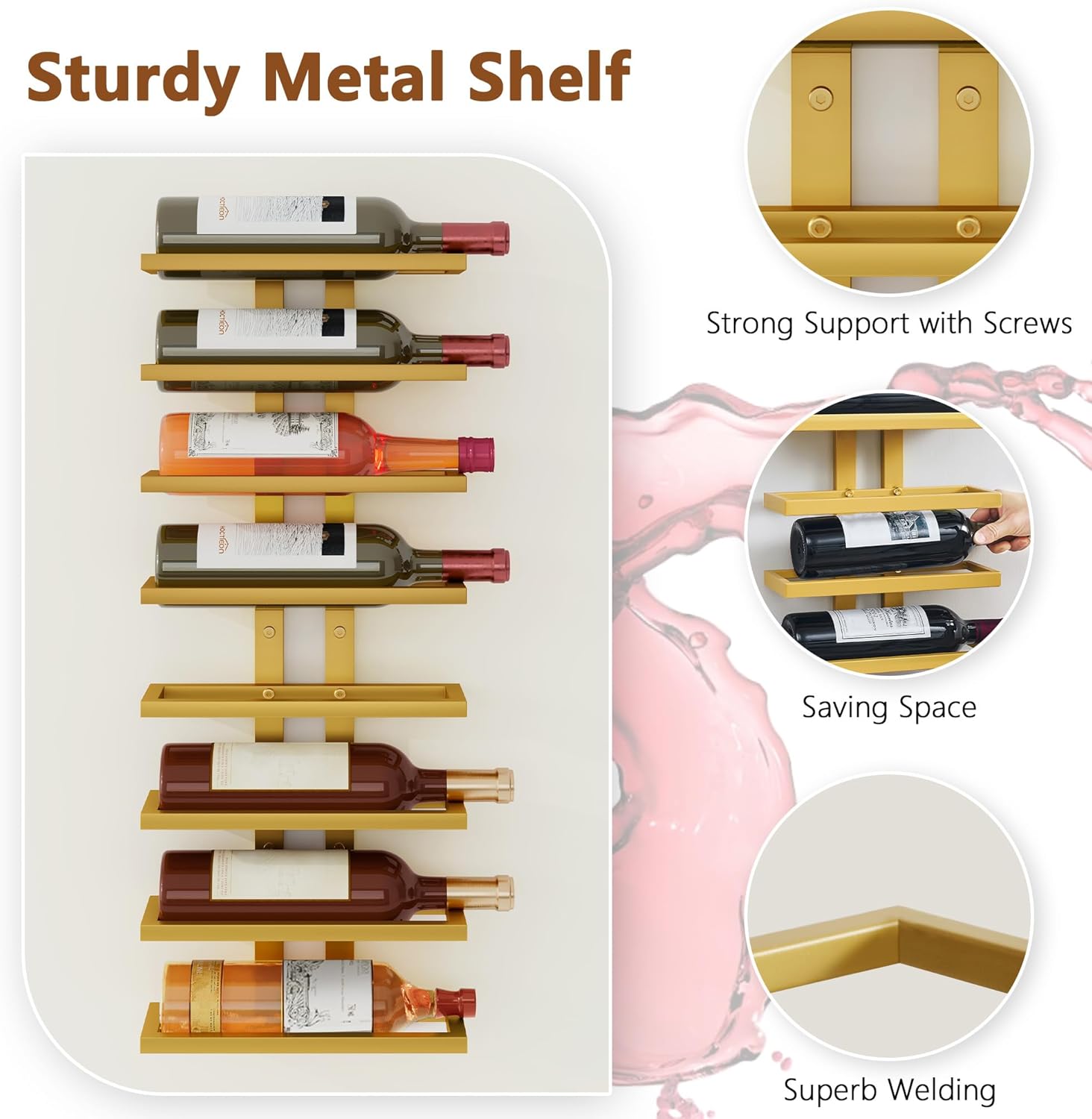 Hoctieon 8 Tier Wall Mount Wine Rack, Wall Racks for Wine Bottles Display and Storage, Hanging Bottle Organizer for Living Room, Dining Room, Wine Cellar, Bar, Gold