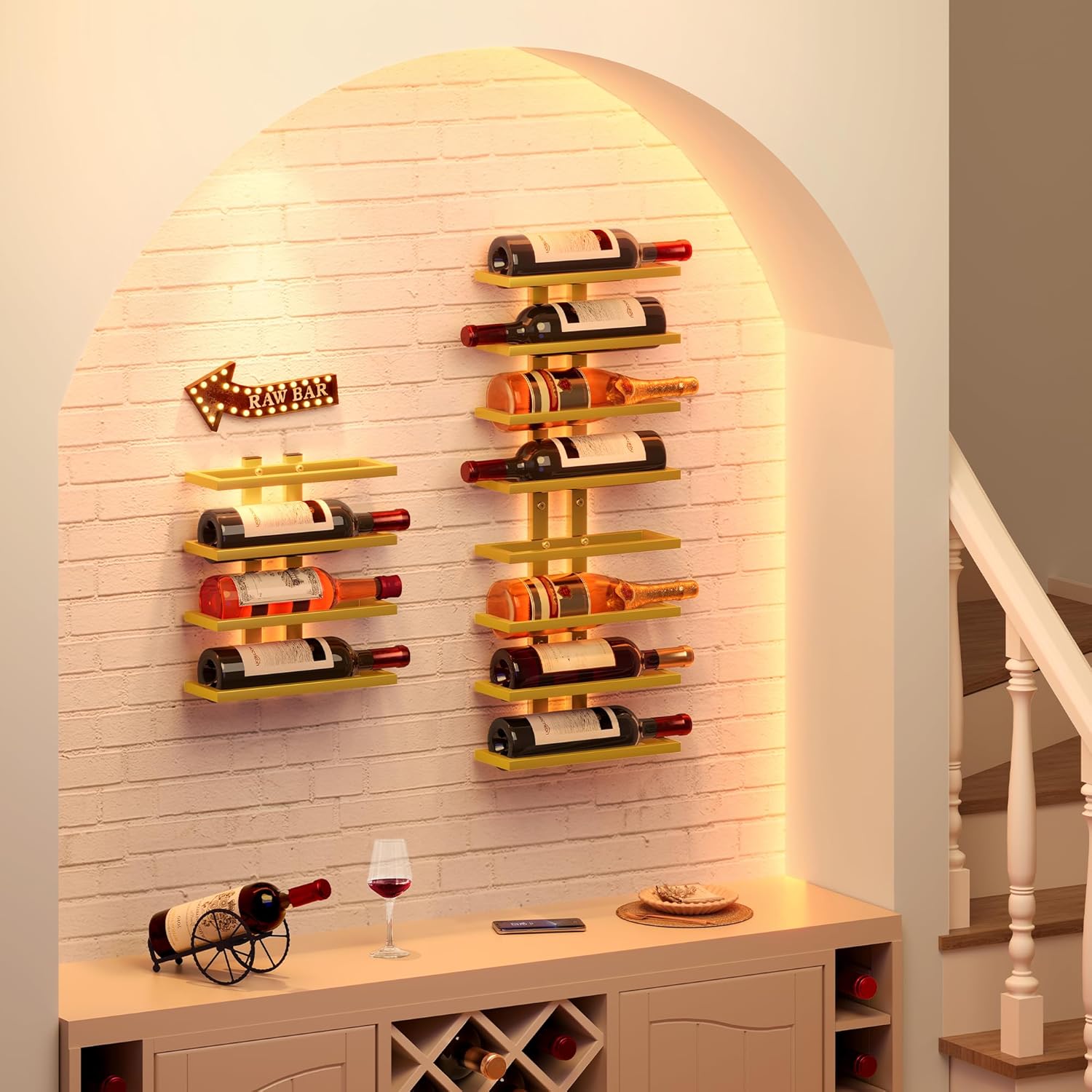 - 【Wine Racks for Wall】Each layer size iron frame for 10.83L * 3.54W * 3.43H (inches), a total height of 28.15H (inches), very suitable for small space storage, can maximize the use of vertical space. Multiple wine racks can also be designed DIY, easy to install, and easy to use.