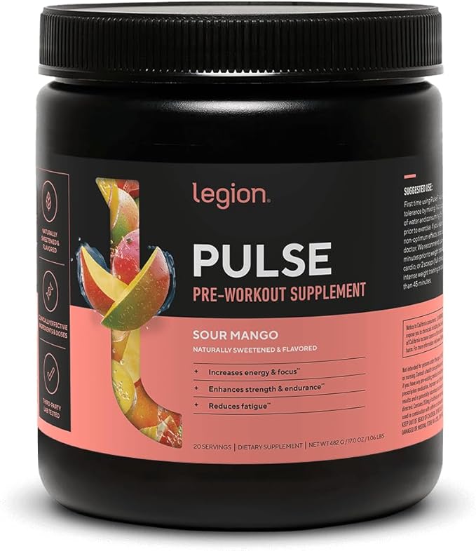LEGION Pulse Pre Workout Supplement - All Natural Nitric Oxide Preworkout Drink to Boost Energy, Creatine Free, Naturally Sweetened, Beta Alanine, Citrulline, Alpha GPC (Sour Mango)