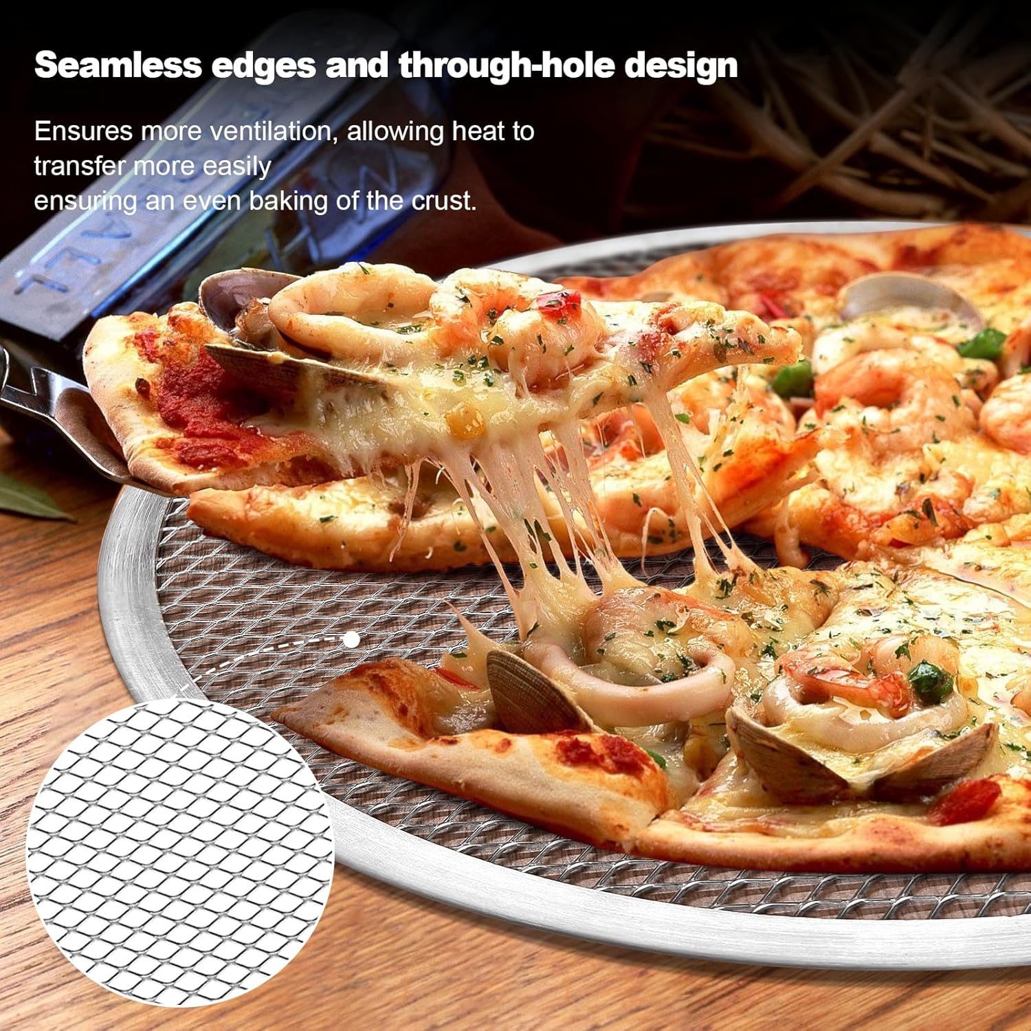 - High Temperature Resistant Aluminum Alloy Material: Round pizza screen is made of high quality aluminum alloy with excellent high temperature resistance, which ensures stability and no deformation during the high temperature baking process, and is durable, helping you to bake perfect pizzas easily