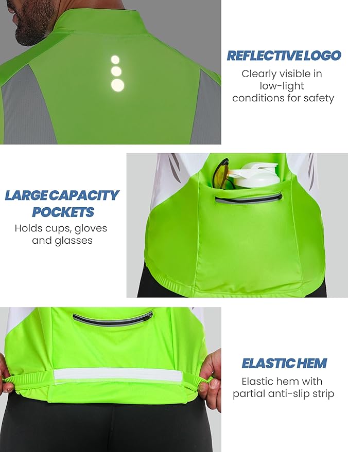 Little Donkey Andy Men's Half Zip Breathable Cycling Vests Reflective Sleeveless Jerseys Lightweight Bicycle Running